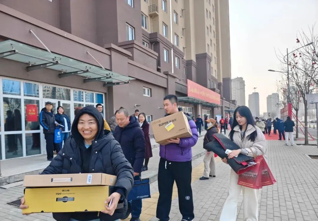 3月8日完成交房,仅用一天时间就完成了394套房屋的手续办理及交付工作。同时,南庄子村村委会还为村民准备了回迁大礼包,里边包含电饭锅、床上用品四件套、炒锅等物品,这些礼物承载着村委会对村民新生活的美好祝愿,为村民们的乔迁之喜增添了浓浓的暖意。
