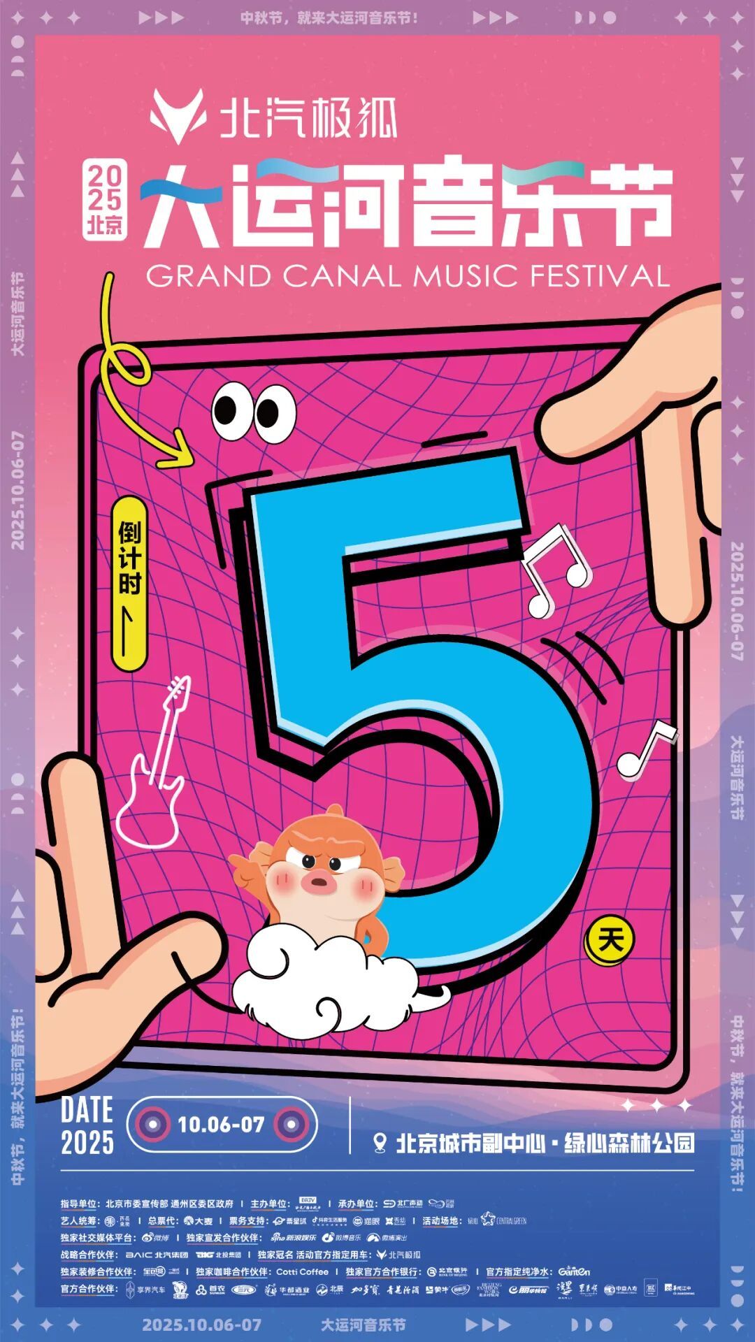 距离 “北汽极狐・2025 北京大运河音乐节” 仅仅还有5天的时间啦! 顶流演出阵容已就位 就等你赴这场运河畔的音乐狂欢~
