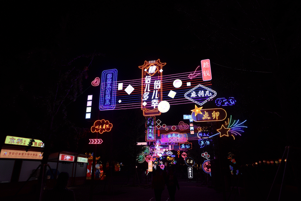 节日欢歌位于园博园3号门入口区域,这里设有迎宾门、团圆宫灯、时代画卷、花团锦簇、花好月圆、北京风物等众多超大型、大型灯组,同时也是九大主题区当中大型灯组最集中的区域。