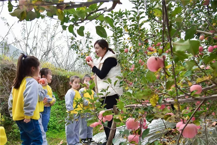 果农专家给幼儿讲解苹果成长的过程