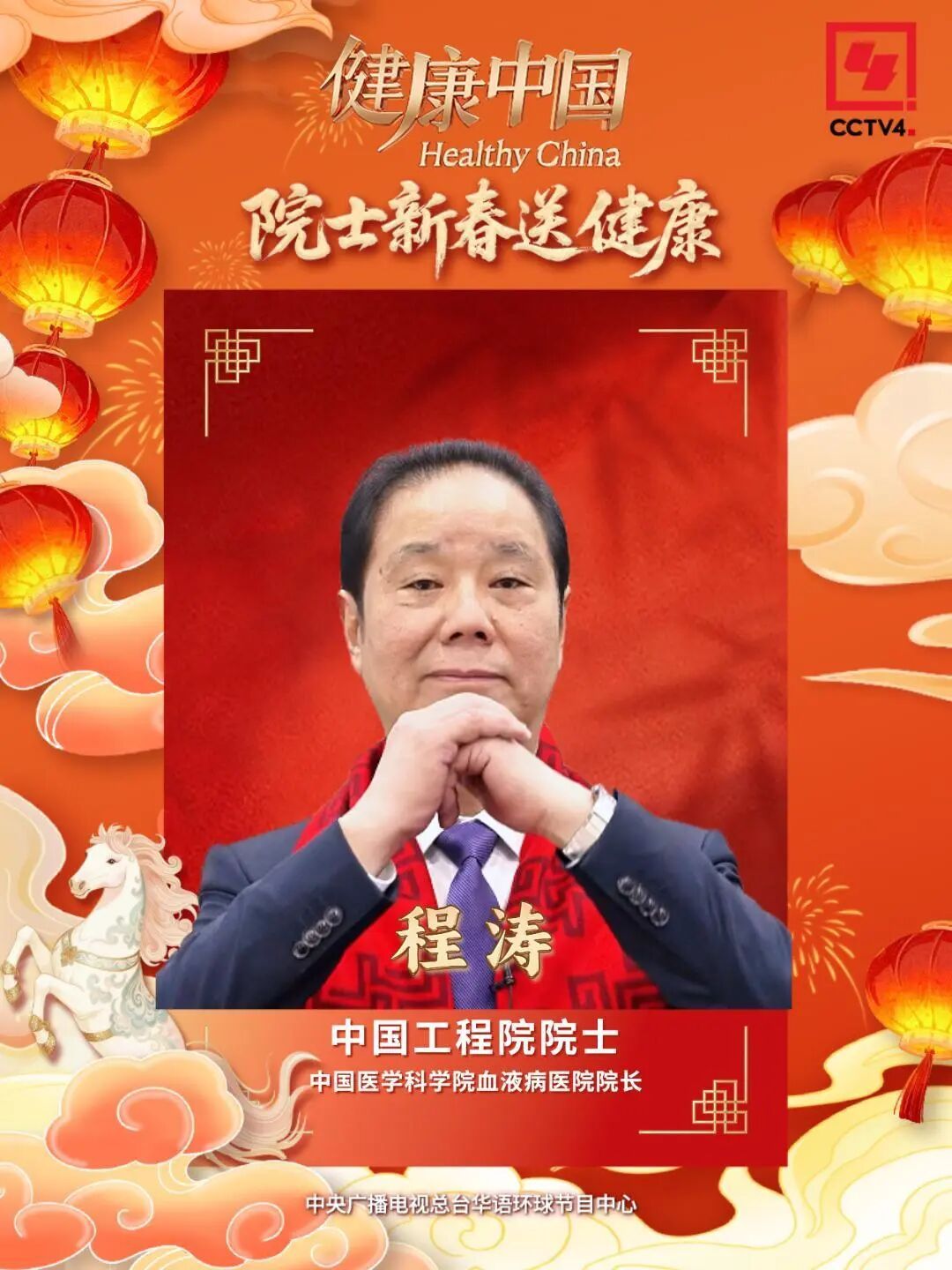 CCTV4《健康中国》新春特别节目《院士新春送健康》,重磅邀请九位院士,为您送上独一无二的健康“年货”!