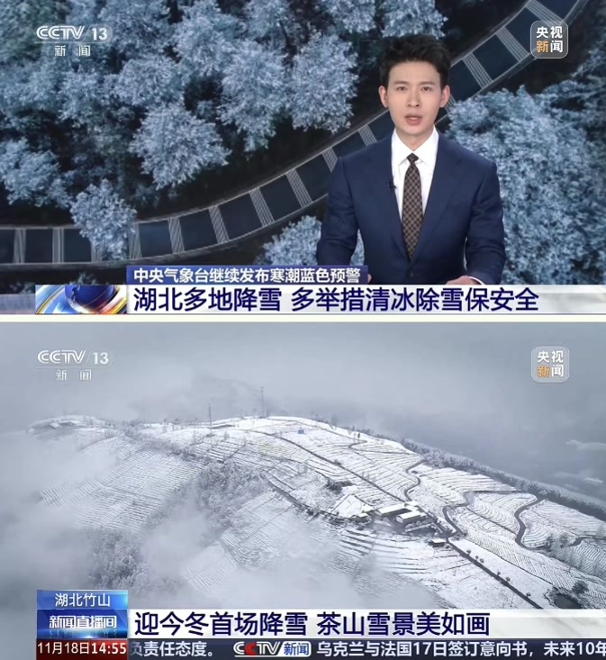 竹山空中竞技的热度还未褪去,竹山初冬雪景又被央视中文、国际新闻频道等平台聚焦。