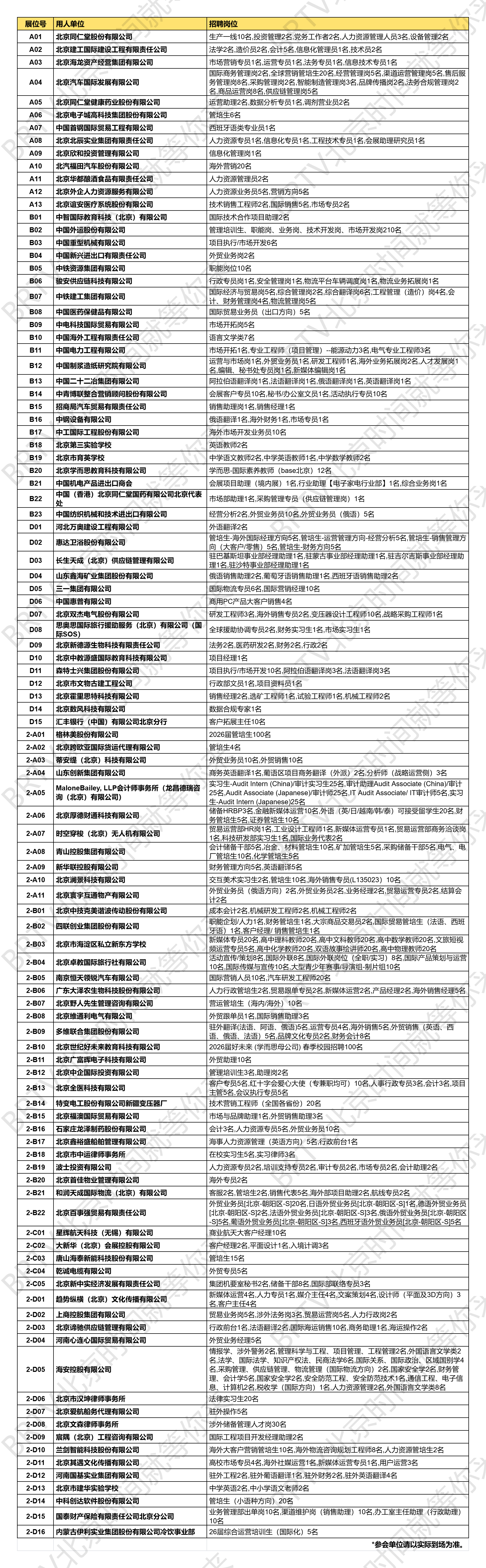 【地点】北京市海淀区清河昌平路南段26号北京高校大学生就业创业指导中心-双选会大厅(北京大学生就业之家)