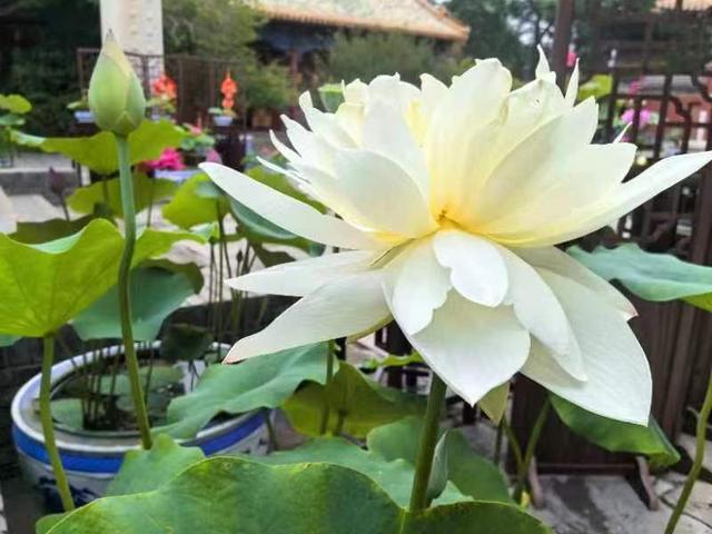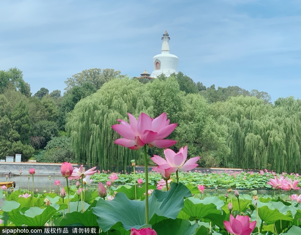 据了解,荷展期间,北海公园布置各类花卉20000余盆,其中荷花作为“一园一品”的特色花卉,展现了其独特的美丽和韵味。同时,各类水生植物也被巧妙地融入到了荷展之中,为游客们呈现了一个丰富多彩的荷花世界。