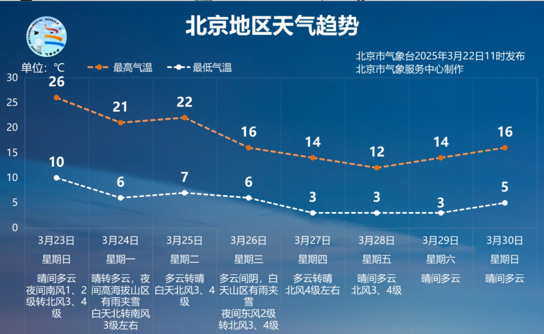 北京市气象台首席预报员赵玮介绍,春季冷暖空气交替影响导致气温快速变化,这在北京很常见。近几日京城都具备升温的良好条件。比如今天的北京,一是昨天基础气温高,无论最高气温还是最低气温,都是近期的高值;二是天空晴好,光照充足,加上还有北风带来的下沉增温扰动影响,都有利于气温升高。