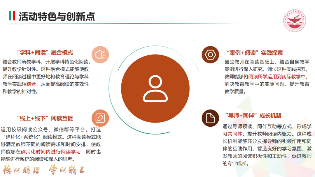 教师成长始于阅读,成于实践,终于辐射。当教师通过深度阅读实现个体专业成长后,便能将汲取的智慧与能量反哺于课堂、润泽于学生;而课堂教学的优化与学生成长的显现,又将激励并带动更多师生加入这一向上的循环。