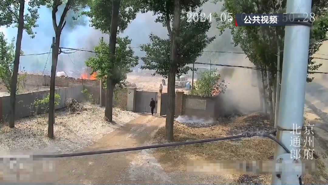 2024年5月4日,北京市通州区西集镇冯各庄村,村南侧路边的草地燃起大火,很快,大火蔓延到树林里,引燃了大院里的木材。