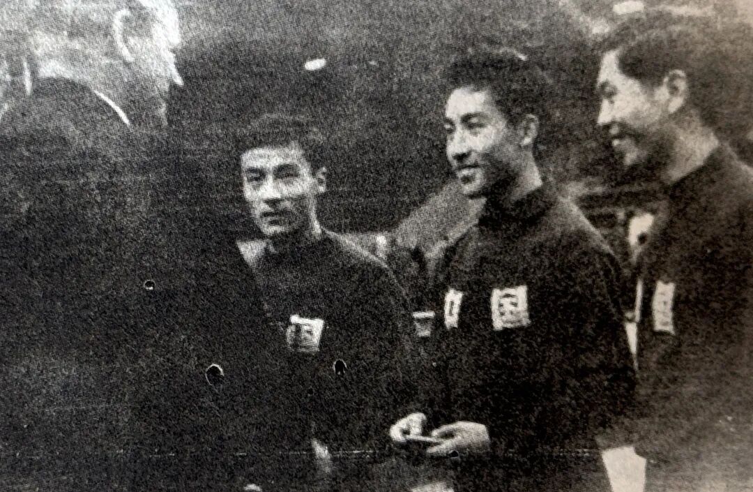 1956年第23届世乒赛,庄家富(右一)与队友们在一起。