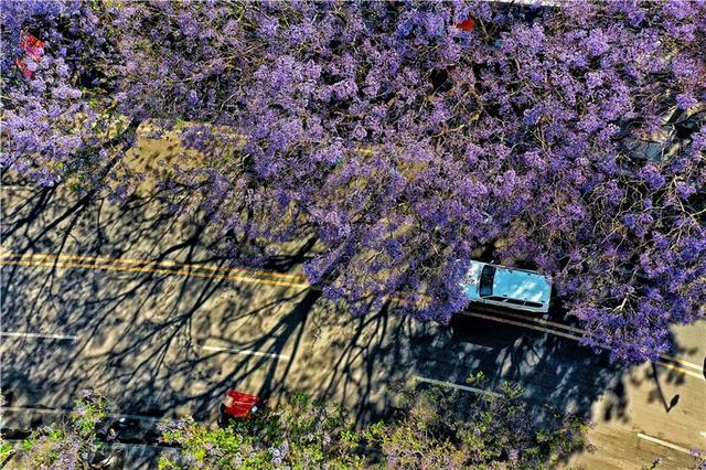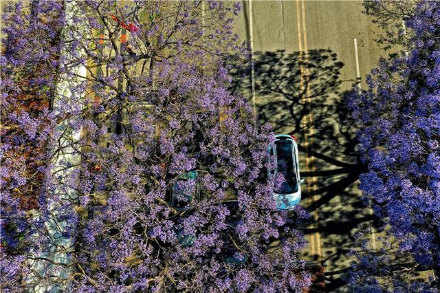 4月下旬以来,四川西昌市城区的蓝花楹已进入花期次第开放,盛开的蓝花楹形成一片片蓝紫色花海,将城市装扮成浪漫的童话世界,备受市民和外地游人的追捧。
