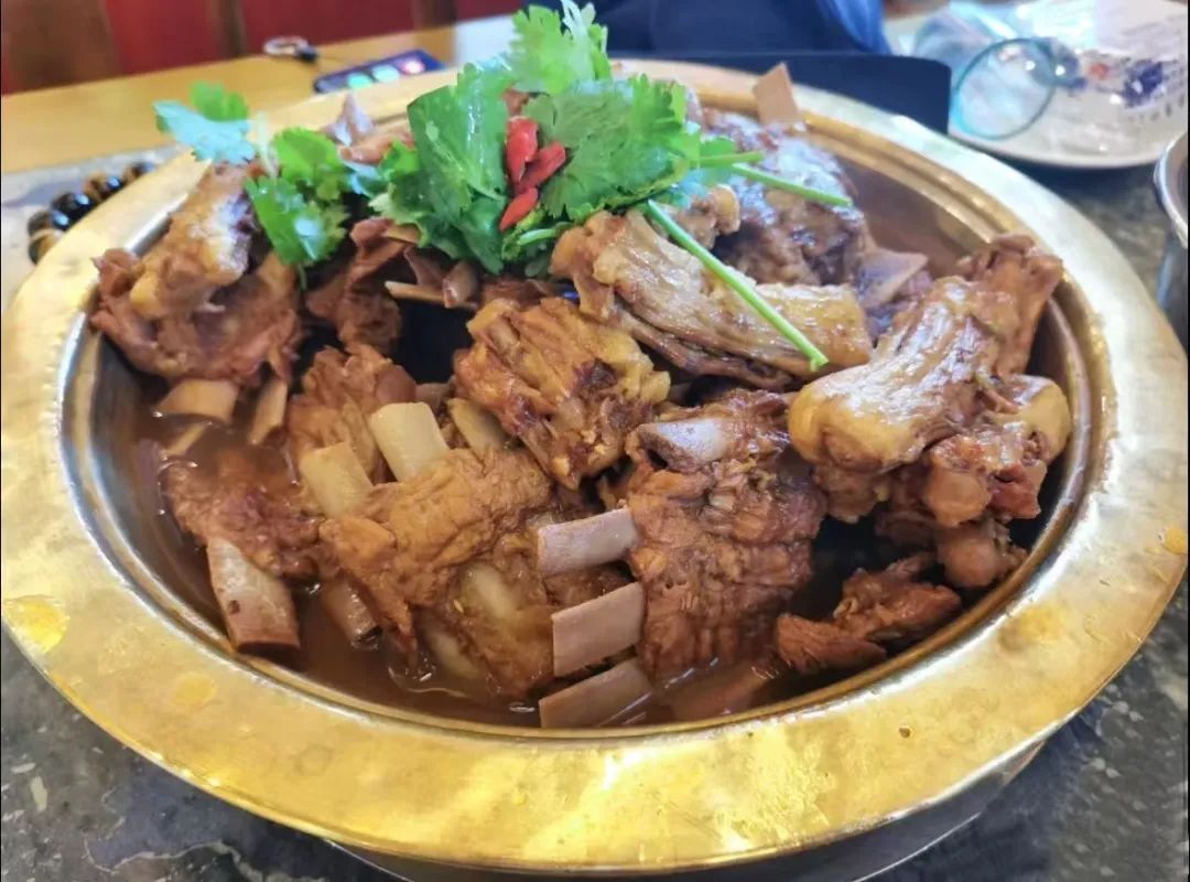 招牌牛肉铜锅炖得软烂入味,老少皆宜,深受骑行爱好者青睐,是补充优质蛋白的绝佳选择。店内风干炭烤的牛肉干风味独特,搭配现煮蒙古奶茶,一秒穿越草原。值得一提的是糖水海棠,不同于常见的山楂,酸甜爽口,餐后食用,解腻一流。