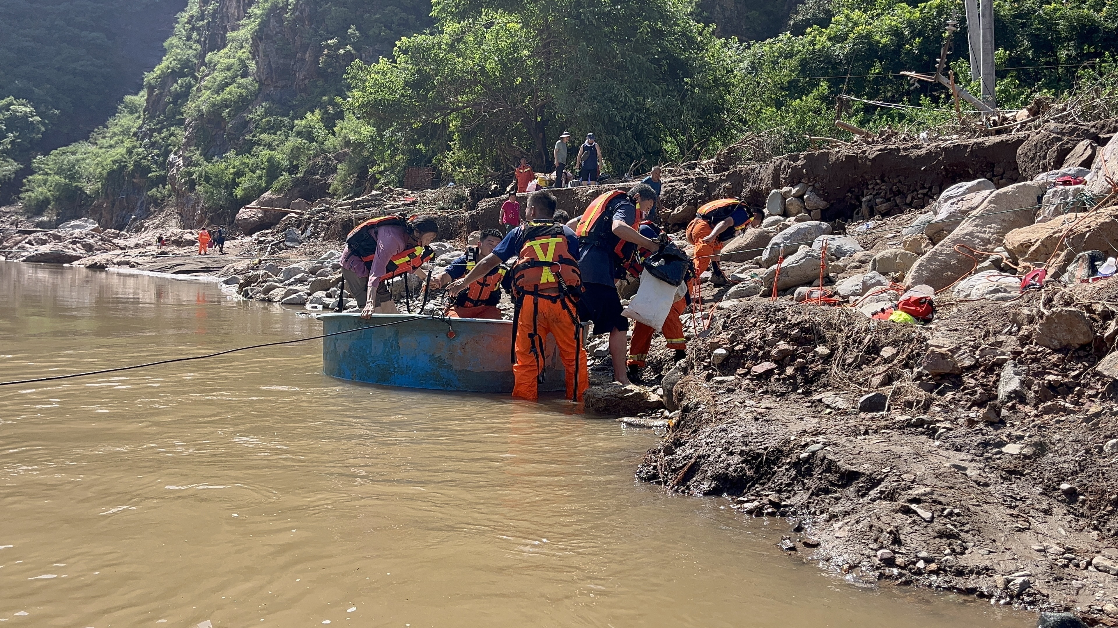 孤岛转移:绳索协同渡船转运80人