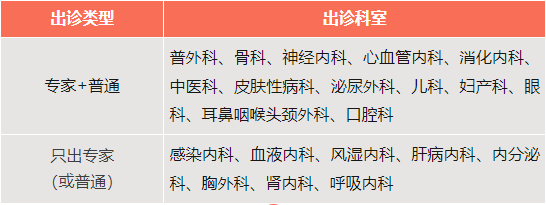出诊科室科:呼吸科、外科、周围血管科、针灸科、推拿按摩科、妇科、儿科、眼科、耳鼻喉、皮科。