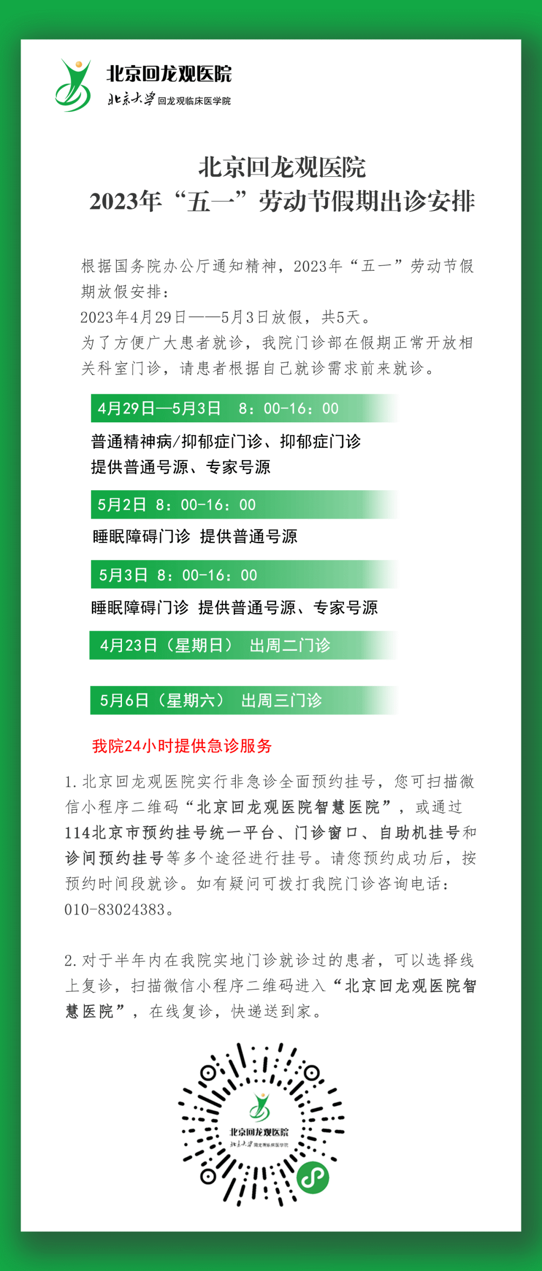 (二)2023年4月29日、30日、5月2日、3日全天门诊。