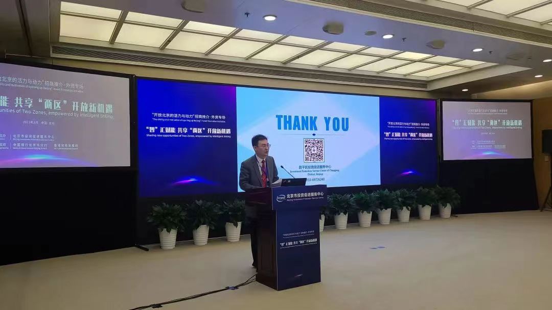 本场活动是“开放北京的活力与动力”招商推介系列活动的第一场,重点聚焦新一代信息技术、集成电路、生物医药等北京重点发展产业,以境内境外,线上线下同步参与的方式举行。在主题演讲环节中,未来科学城管委会副主任于成文对我区营商环境、政策和资源禀赋等进行现场推介。