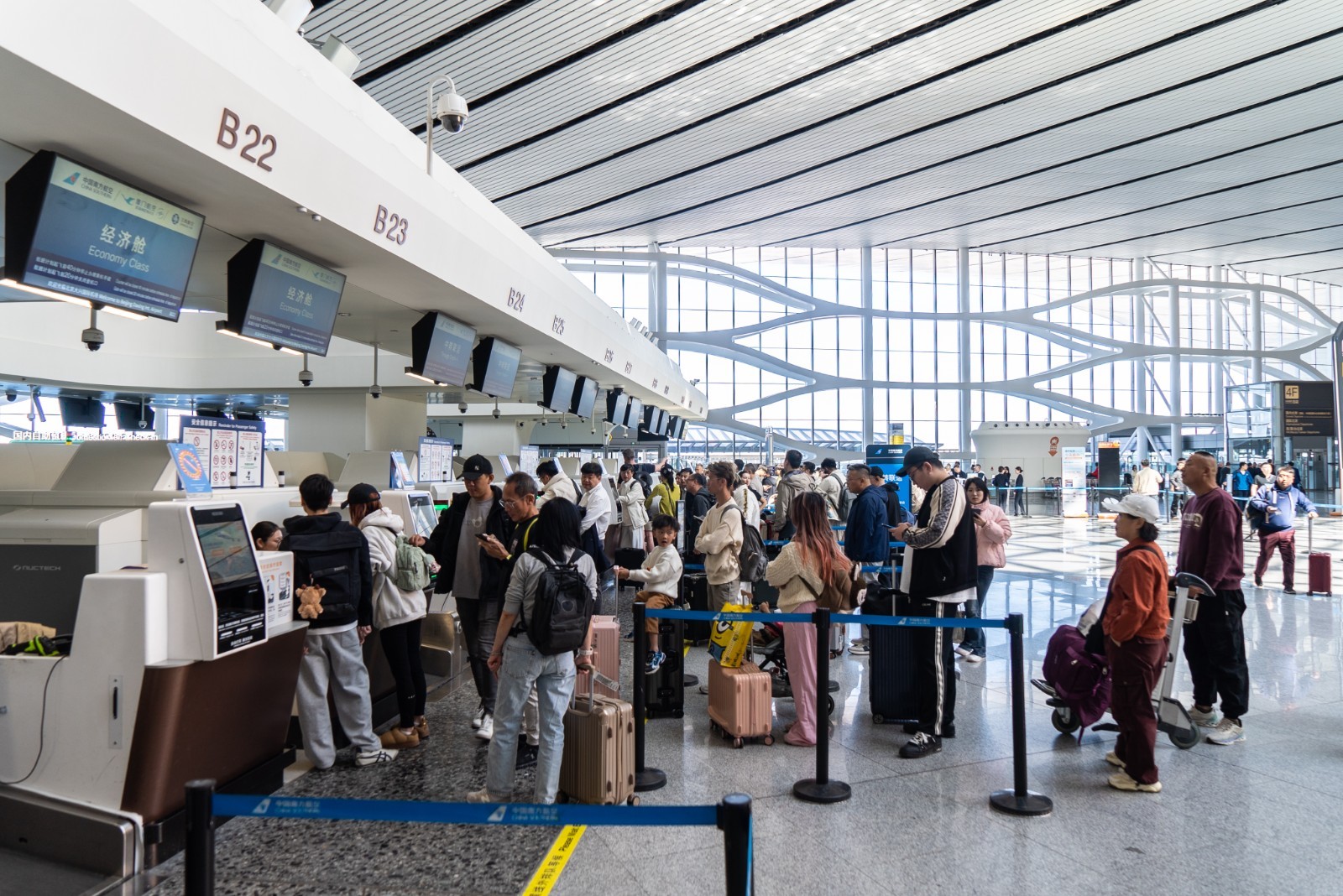 为做好清明假期出行服务保障,大兴机场提前部署、周密安排,加强运管委协同保障机制,与空管、航空公司、地服公司等单位全面协同联动,确保假期期间运行平稳,旅客出行顺畅。此外,大兴机场加强航站楼现场人员值班及备勤工作,紧盯现场运行态势感知;做好旅客问讯引导、爱心帮扶、急客保障等服务,志愿服务覆盖进出港早晚高峰时段,指廊管家一站式服务为旅客带来暖心的乘机体验,“兴心相印”全链条服务用心护航每一段旅程。