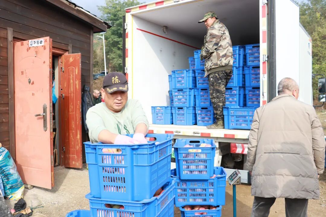 在古龙路两侧的苹果园里,处处是热闹的丰收景象。果农们一手轻托苹果,一手麻利地剪断果柄,小心翼翼地将果实放入筐中。不过三五分钟,就能采满一筐。负责装箱的果农则按照大小、色泽、品相等标准仔细分拣,将苹果划分为不同等级后迅速称重包装。“这是特级果,单果都超过六两。”果农王大叔掂着手中的苹果自豪地介绍,“咱们张山营的苹果口感脆甜、汁水充足,吃过的人都夸好!”