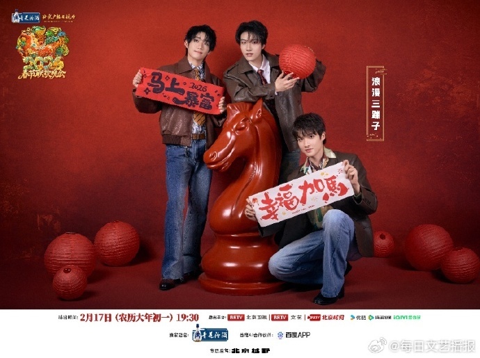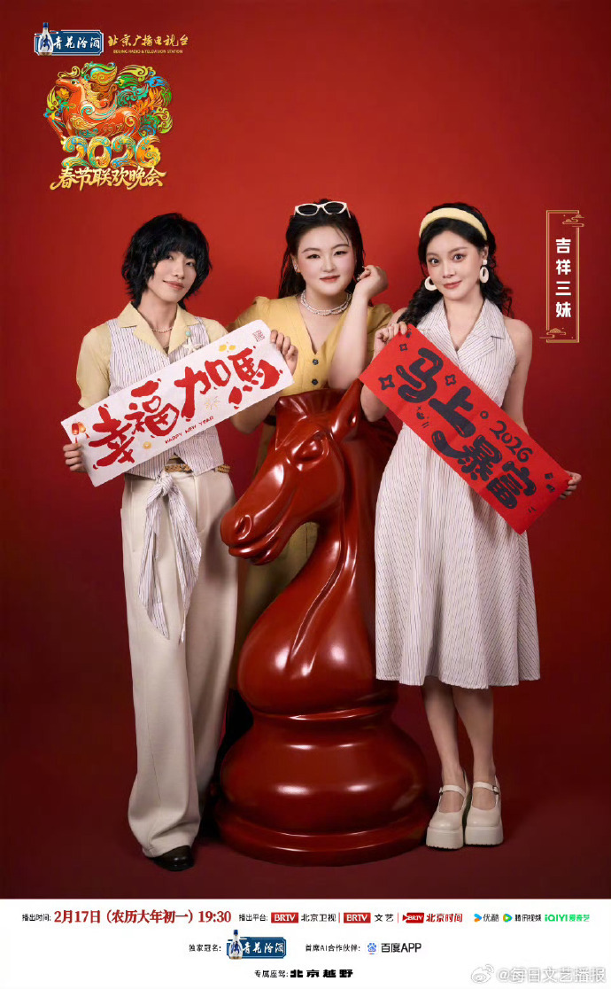 北京台春晚第三波阵容官宣,开麦唱享新春,声浪点燃年味!浪漫三蹦子组合、吉祥三妹、烎组合、蓝调时刻组合齐聚舞台。