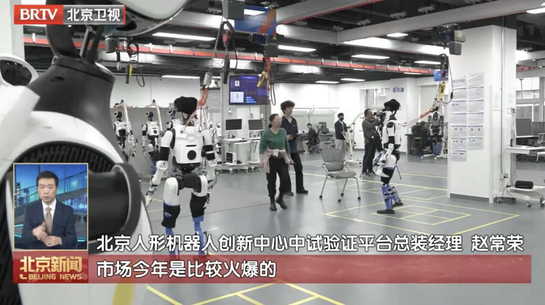 北京人形机器人创新中心中试验证平台总装经理赵常荣介绍:“我们今年的目标产能规划是5000台机器人,但是基于现在的订单来看,我们可能要提产,市场今年是比较火爆的。”