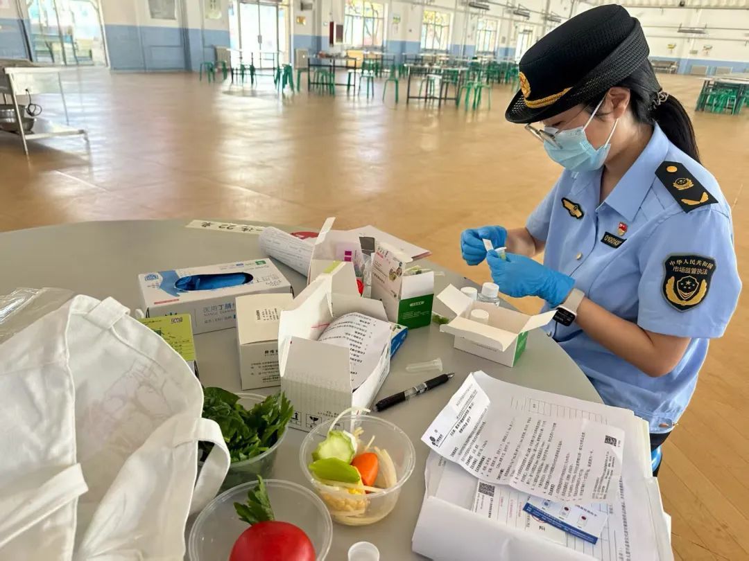 为服务好北京市学生军训基地食堂自供餐工作,怀柔科学城所启动“全链条、零缝隙”监管机制,成立专项工作组,紧盯食品储存、加工全流程,核查食材来源合规性,完善采购台账。累计开展全覆盖检查13次,开展食材快检12次共90余项,严格执行每餐留样制度,实时记录操作人员健康状态。