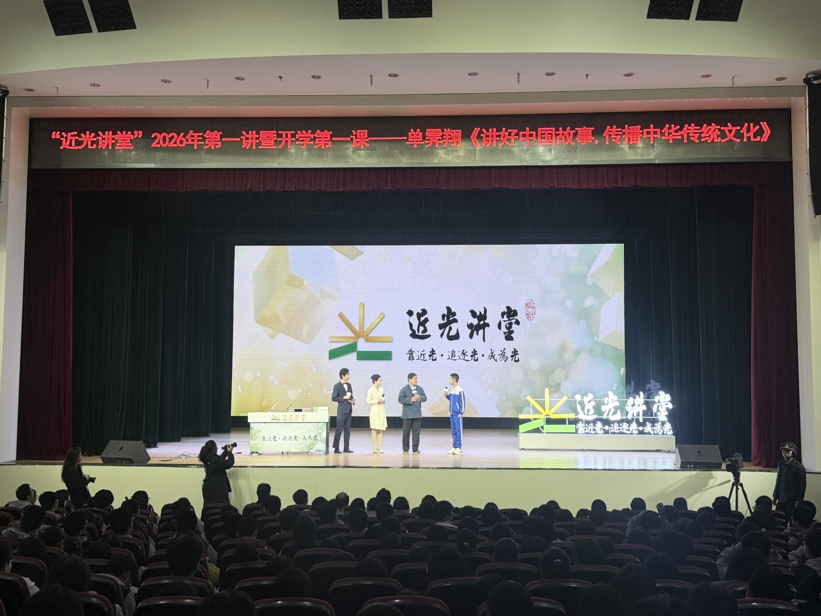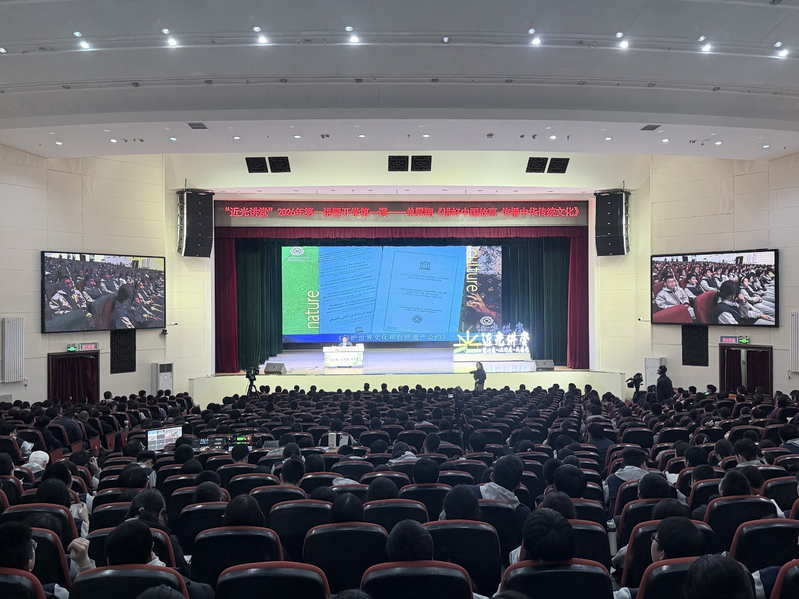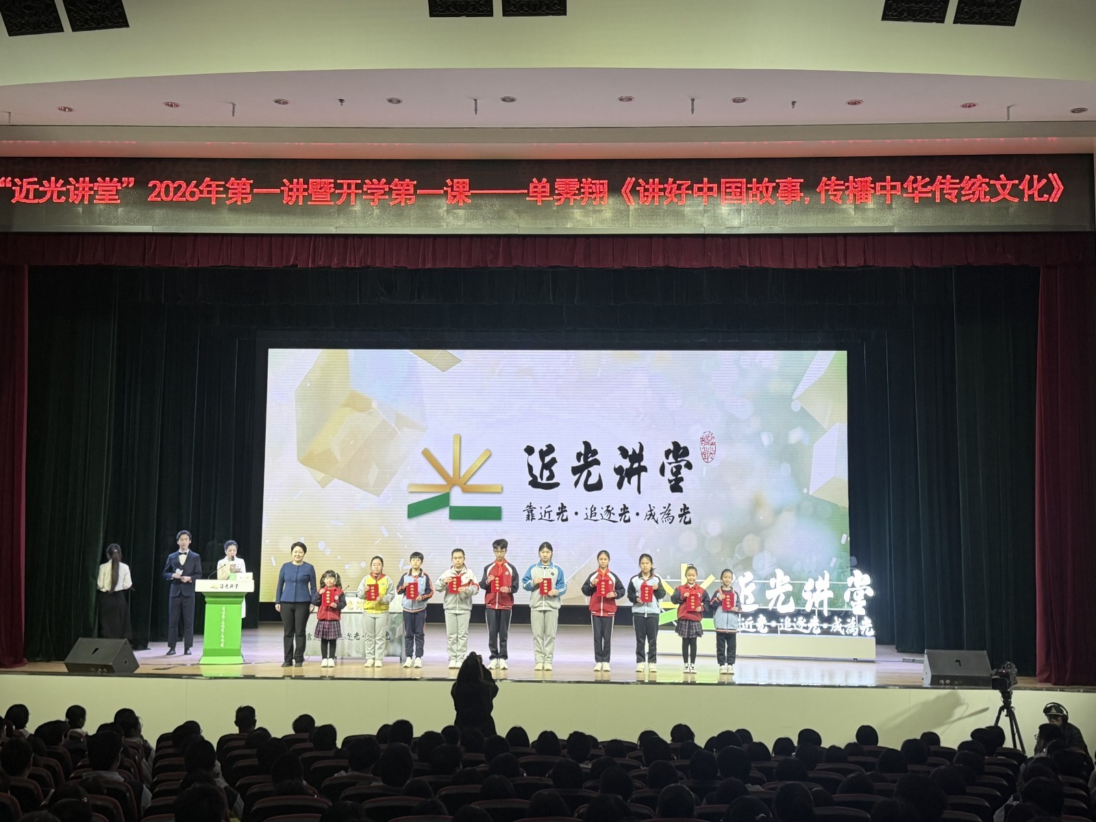 本端讯(记者 刘祚印)3月12日,“近光讲堂”迎来了2026年第一讲暨开学第一课。中国文物学会专家委员会主任、故宫博物院原院长单霁翔以“讲好中国故事,传播中华传统文化”为题,为现场师生带来了一场关于文化遗产守护与传承的精彩分享。