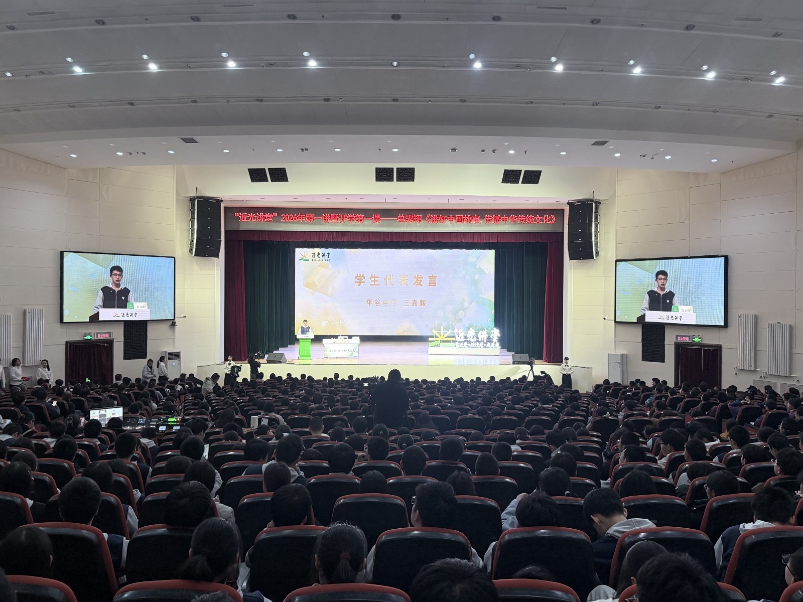 平谷区始终把大思政课作为落实立德树人根本任务的重要抓手,于2023年9月正式启动“近光讲堂”,先后邀请董宇辉、邓亚萍、翟志刚、张召忠等各领域知名专家走进平谷,通过60场专题讲座,为孩子们讲述亲身奋斗经历、行业专业知识与家国责任担当,帮助青少年树立正确三观、找准成长方向。活动年均覆盖师生及家长40余万人次,同步开展征文、书画等“近光”系列主题活动10余期,以多样化形式持续深化育人实效。2025年平谷区教育高质量发展大会进一步明确“654321”发展路径,系统谋划促进学生全面发展的“六堂课”,并将上好以“近光讲堂”为引领的大思政课列为首要重点工作,为讲堂高质量发展锚定了方向、奠定了坚实基础。