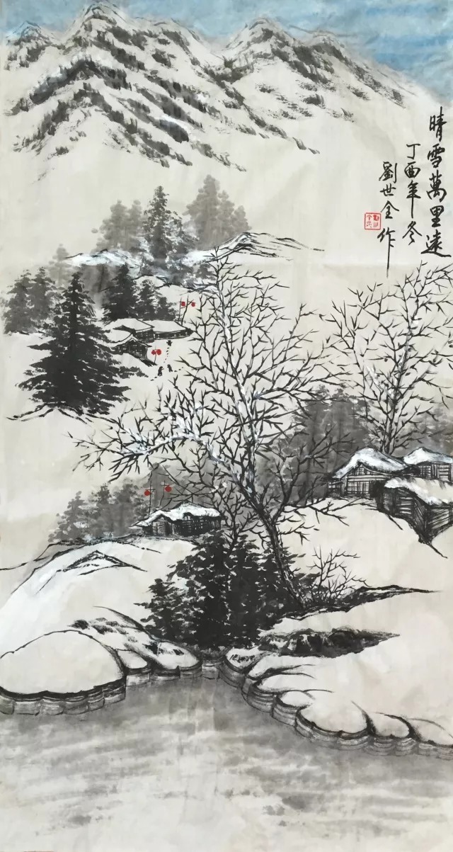 刘世全画作意境的最终构成,是由“创作”和“欣赏”两方面结合才得以实现的。作为观者,要明白画家的创作是将“无限空间”表现为“有限空间”,而欣赏也是从“有限窥视”到“无限联想”。刘世全的山水画正是“由面到点”的创作过程和“由点到面”的欣赏过程,从而使作品中的意境得以展现出来,而且两者都需要“形象”和“想象”,才能感悟到意境之美。客观事物的艺术再现和主观精神的表现,有机地构成他绘画的“意境幽深”。