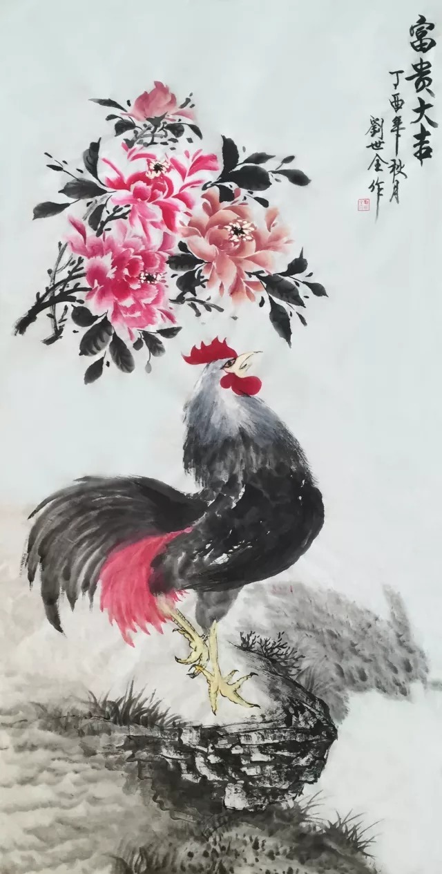 唐代张彦远曾言:“意存笔先,画进意在。”刘世全深知其意,他的花鸟画讲究笔墨技法,在画面中通过线条、墨色来塑造花鸟形象,骨气形似本于立意,而归乎用笔。画面中简练概括、酣畅淋漓用笔,恣意挥发的墨色耐人玩赏。