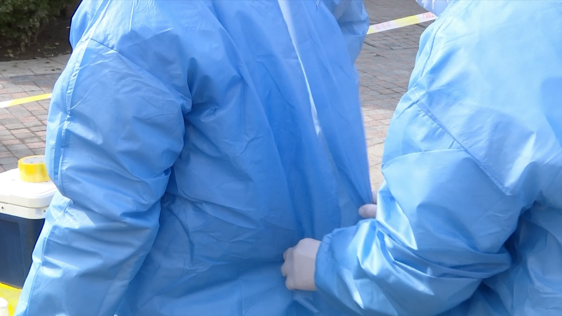 记者今天下午来到门头沟区永定镇京西嘉苑社区泷悦长安伊顿园,看到社区大门口处已拉起警戒线,几名社区和物业工作人员按照二级防护标准,穿戴全套防控设备,准备进入社区为居民运送蔬菜等生活物资。