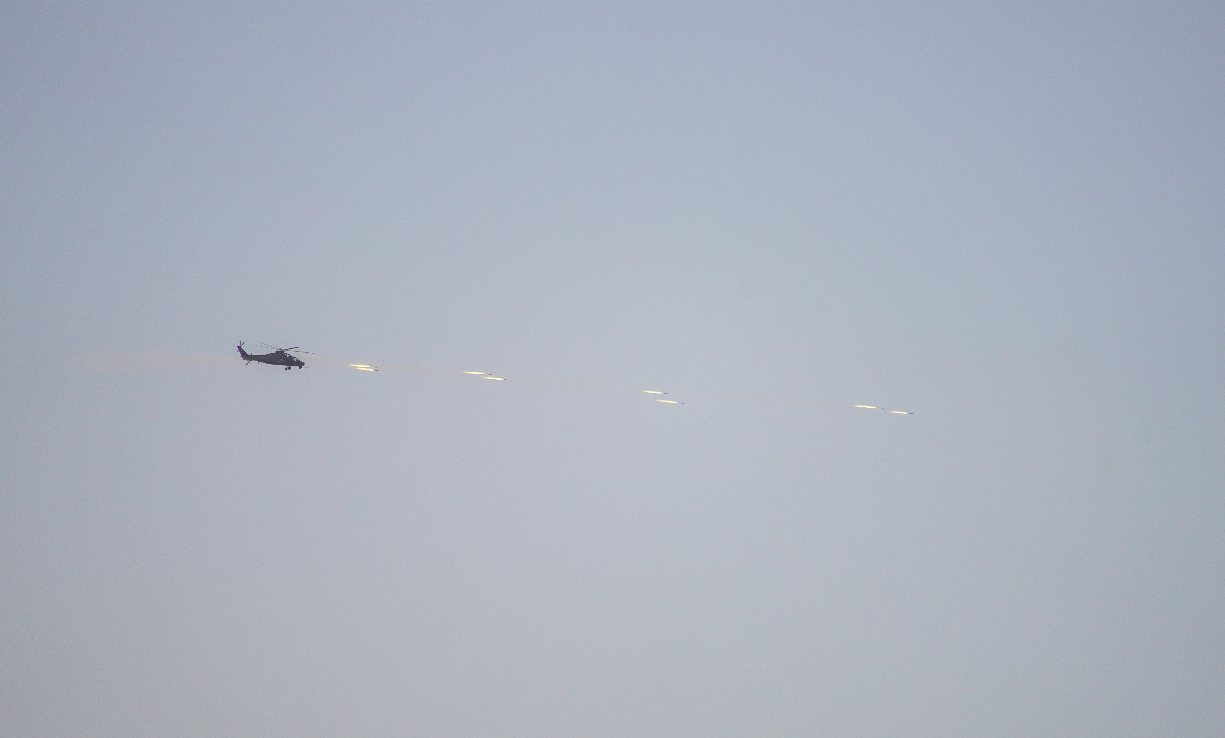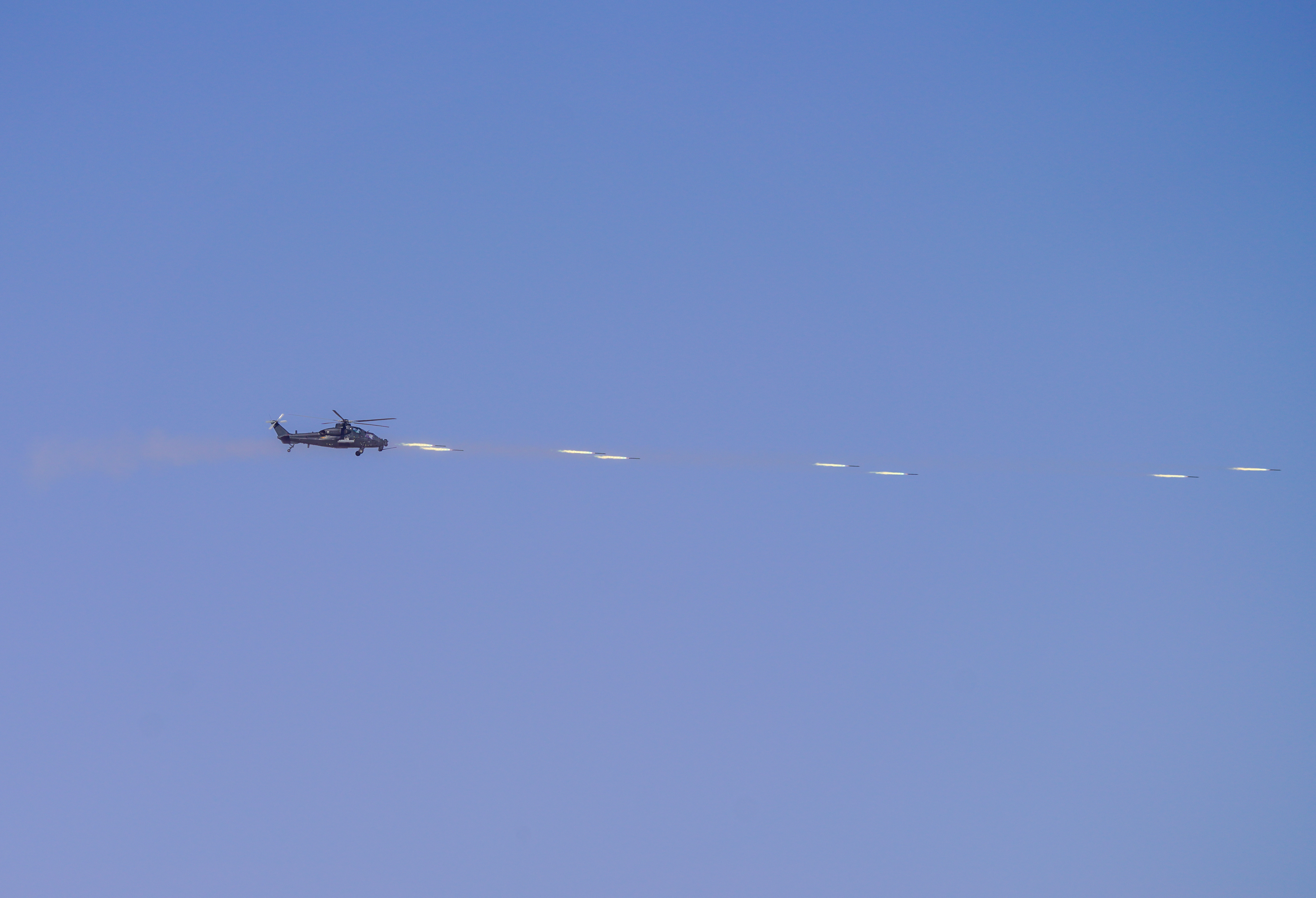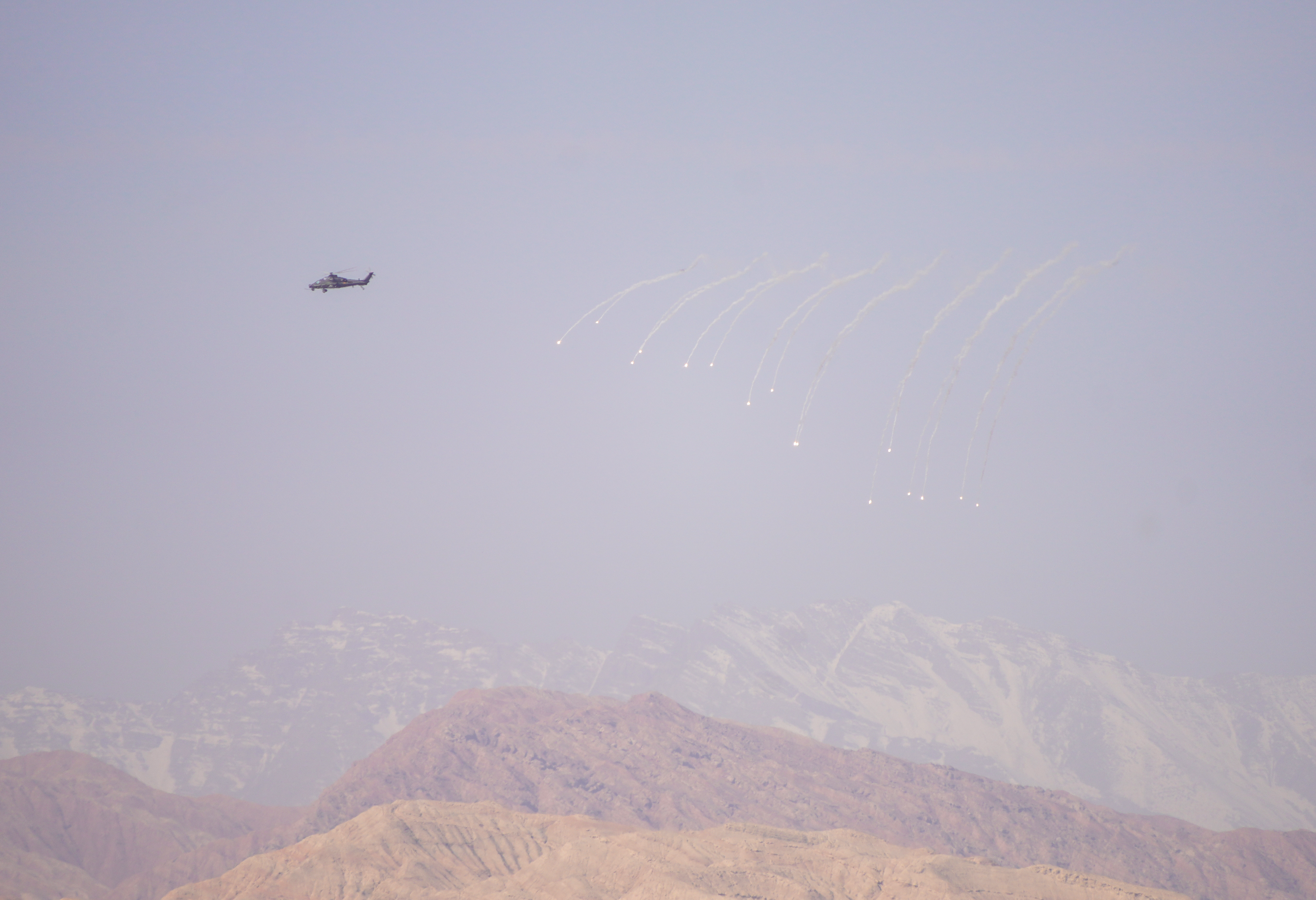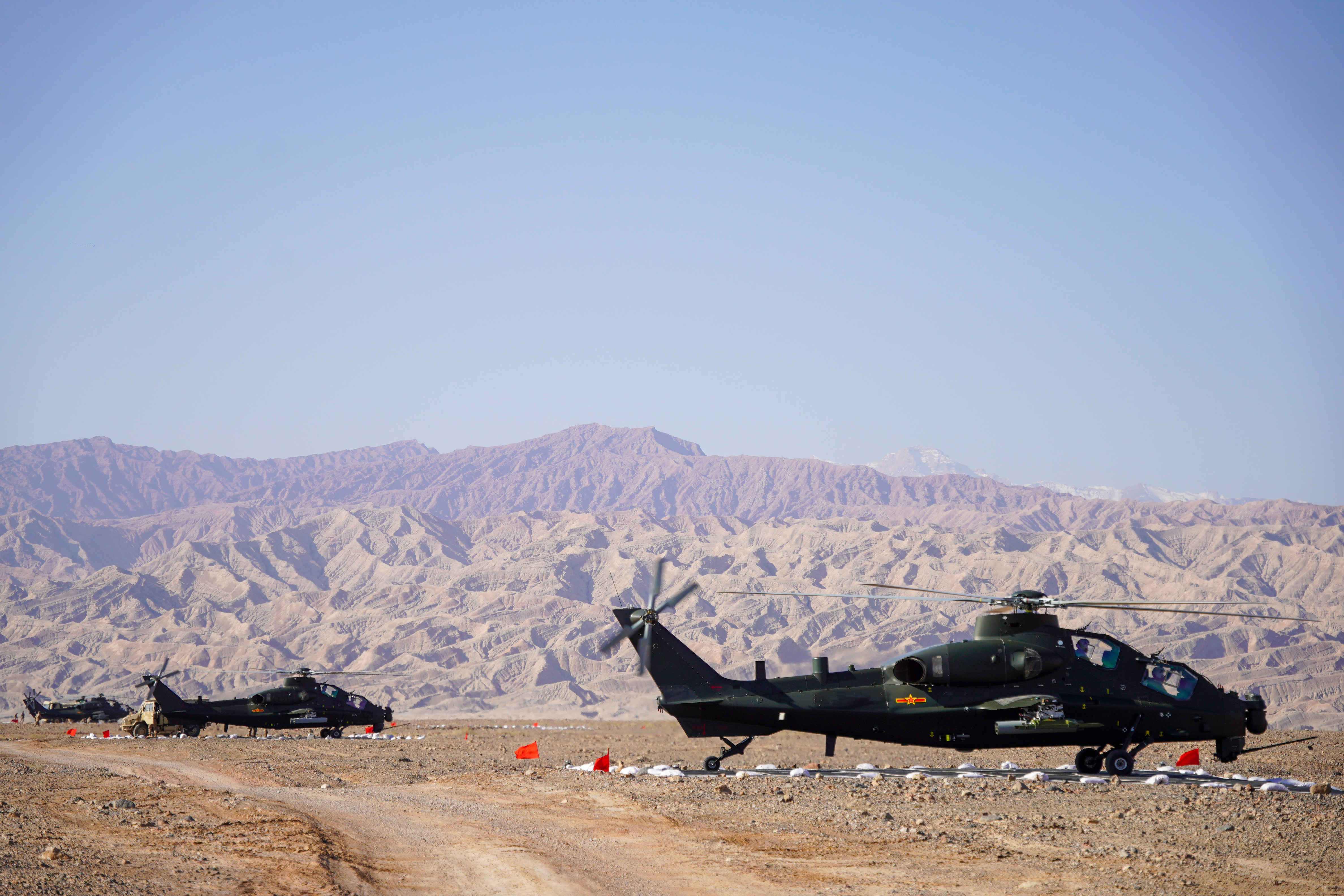 连日来,在昆仑山北麓某训练场,新疆军区某旅组织了一场直升机多目标、多弹种、全要素实弹射击演练。在探索战法训法的同时,全面检验年轻飞行员的技战术水平,锤炼部队实战化能力。