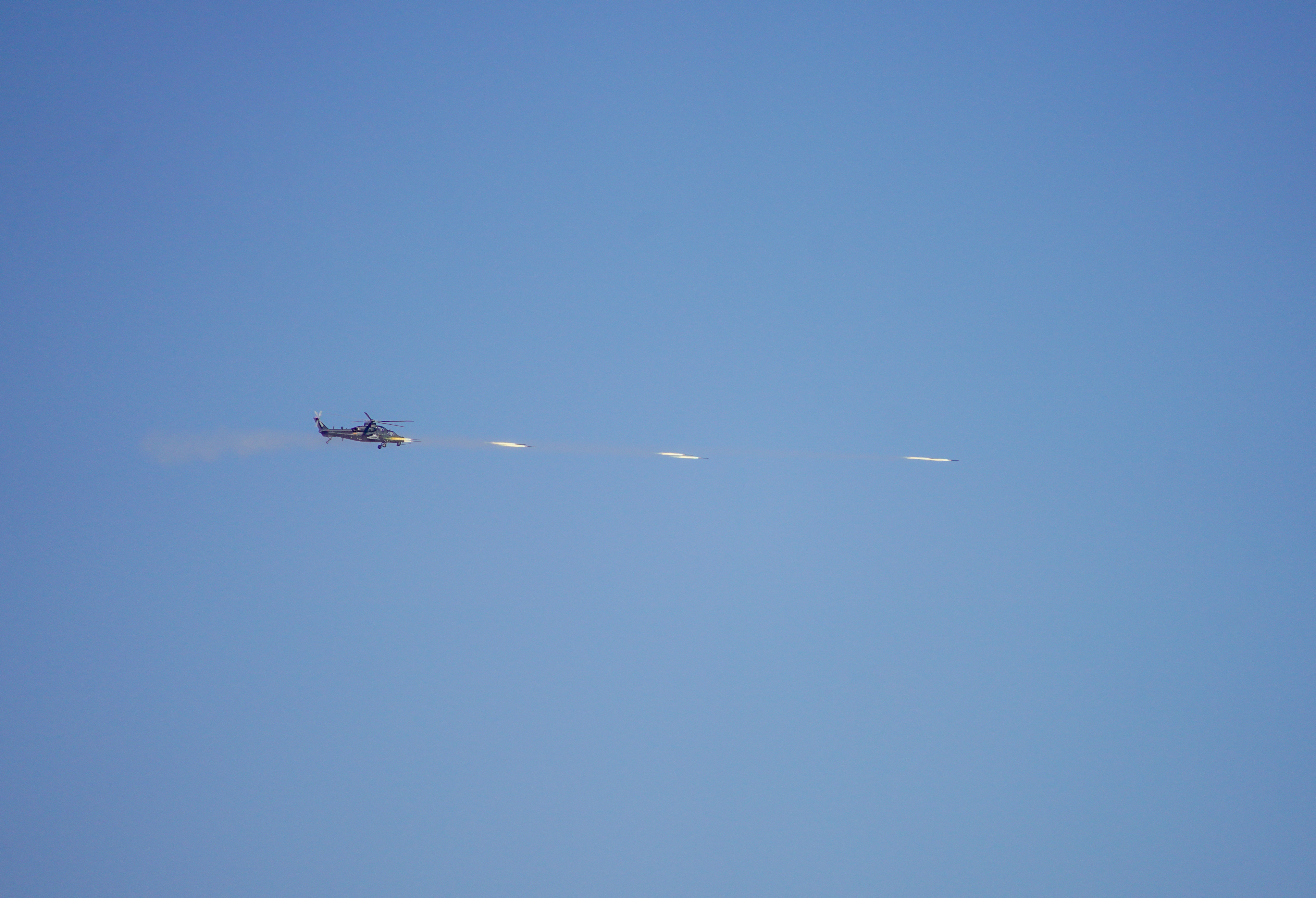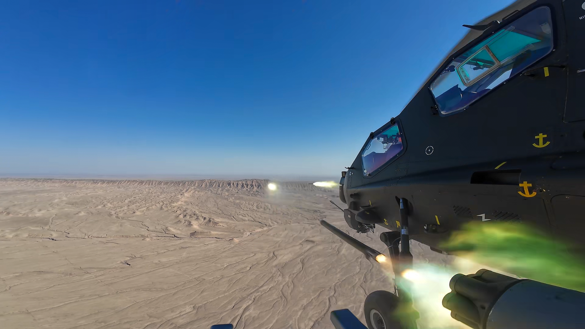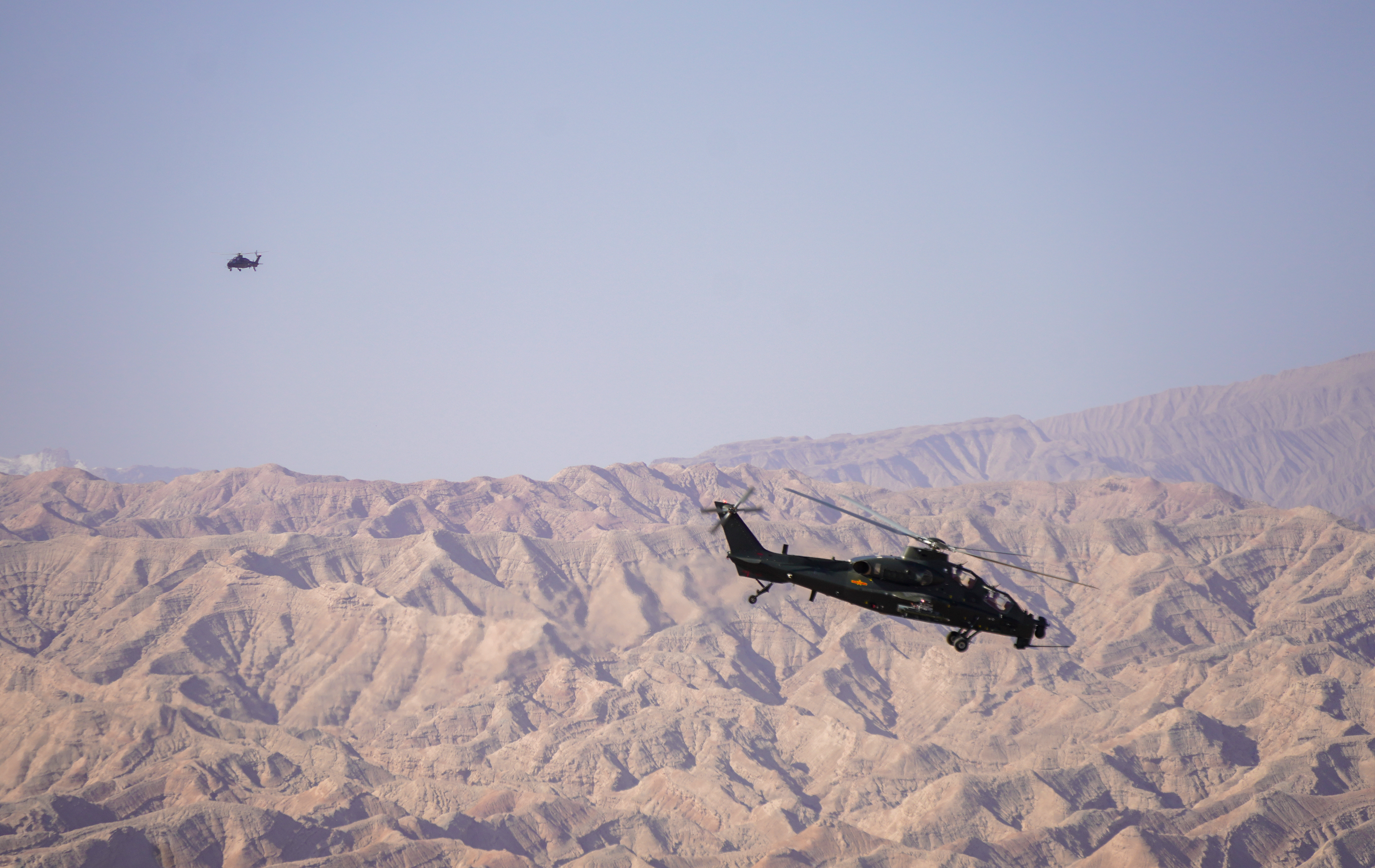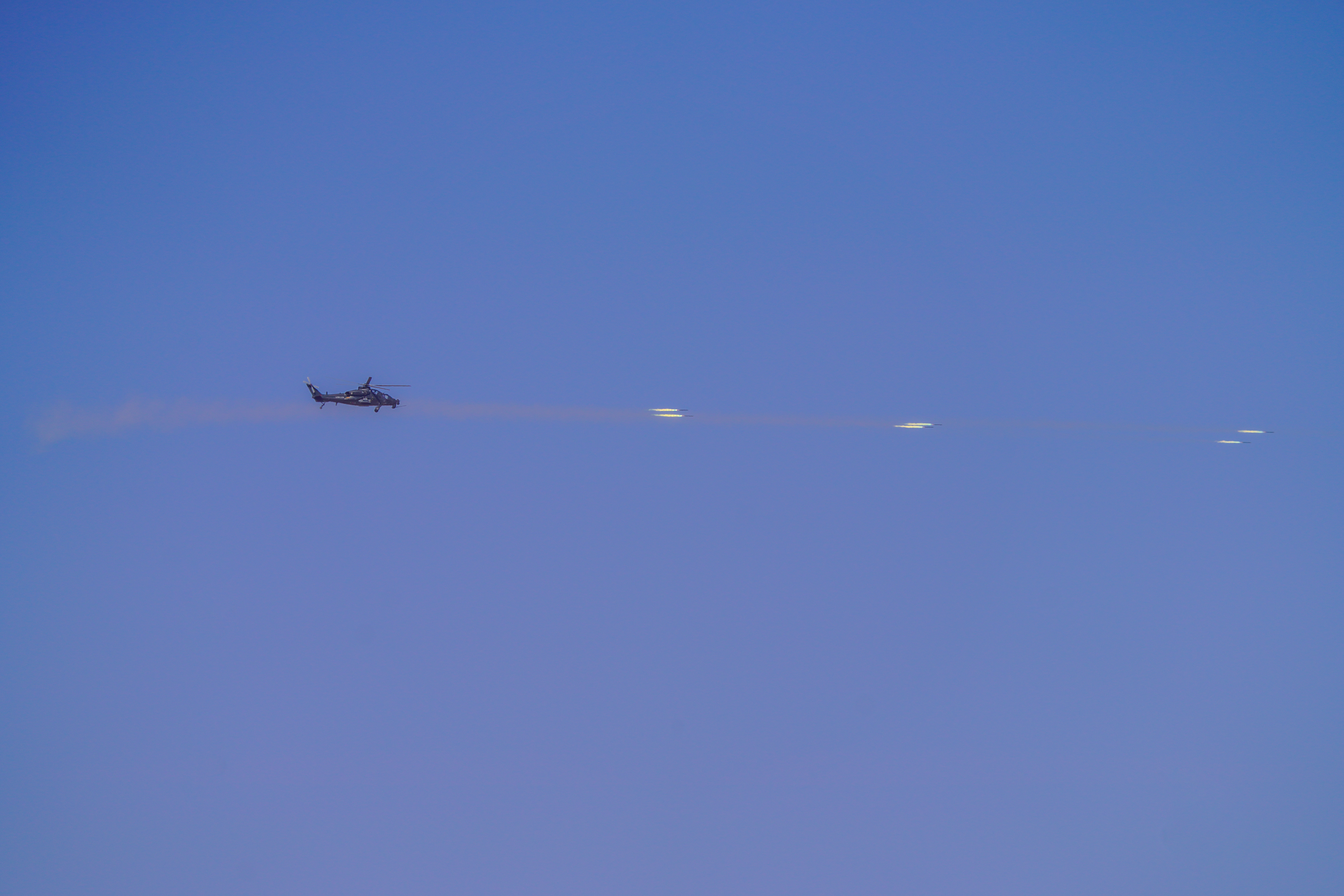连日来,在昆仑山北麓某训练场,新疆军区某旅组织了一场直升机多目标、多弹种、全要素实弹射击演练。在探索战法训法的同时,全面检验年轻飞行员的技战术水平,锤炼部队实战化能力。
