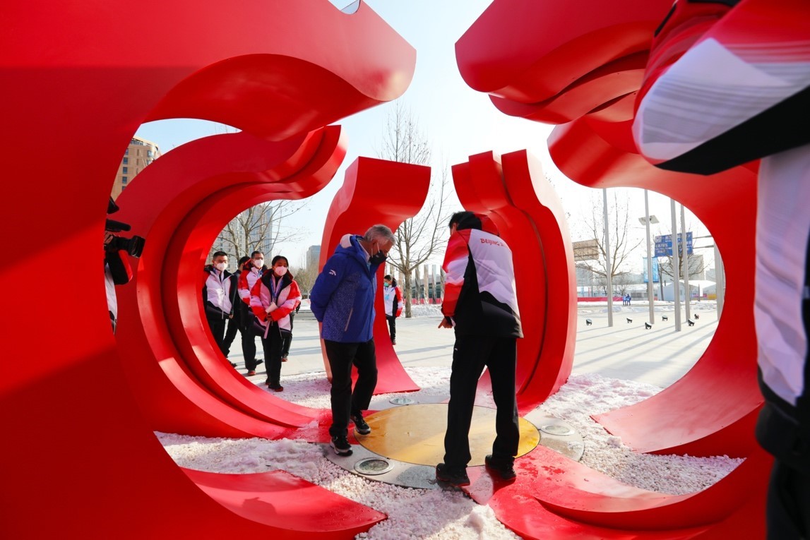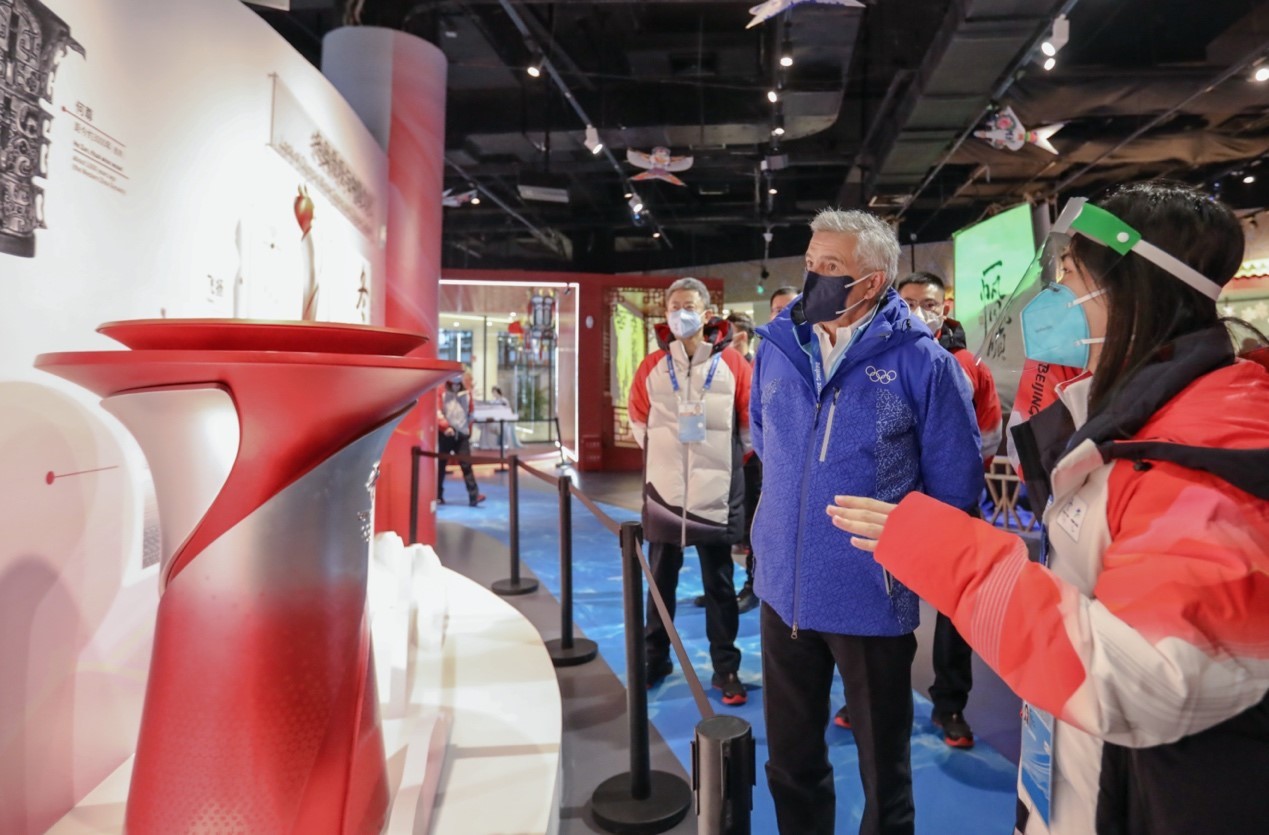 会谈结束后,萨马兰奇和杨树安一同参观了北京冬奥村广场区、运动员餐厅和居住区,并与志愿者进行亲切交流。