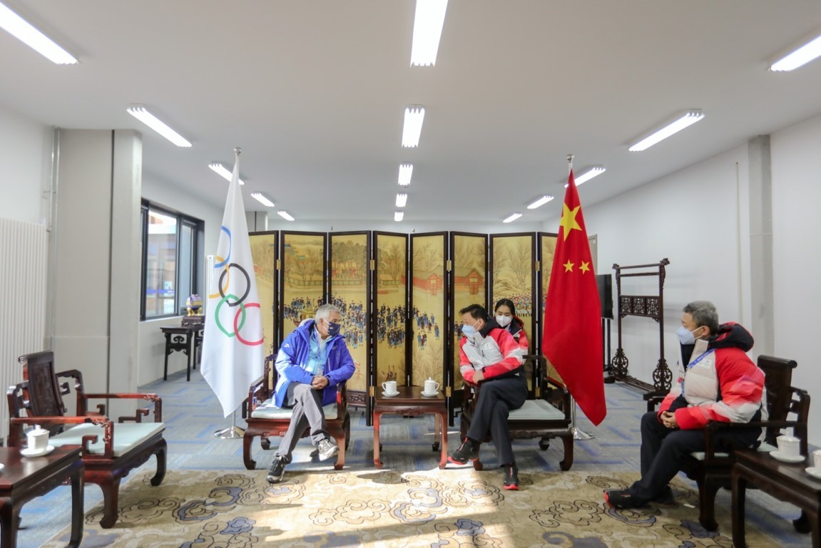 萨马兰奇首先听取了有关休战壁画和旗帜广场的情况介绍,随后来到村长会客室,与杨树安进行了会晤,听取有关北京冬奥村的整体运行情况。