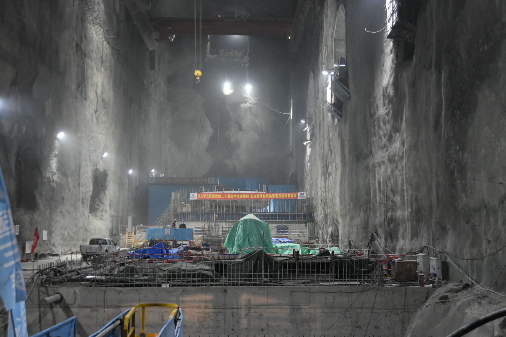 今年6月下旬,项目建设取得关键性胜利——地下厂房顺利开挖完成,主副厂房开挖仅用时18个月,刷新国内同类型抽蓄电站厂房开挖记录,展现“安能速度”,为电站首台机组按期投产发电奠定了坚实基础。下水库大坝在导流推迟四个月的不利情况下仍如期完成填筑目标,破碎系统安装调试仅用两个月即投产,创造了临建设施的新速度,为工程建设注入强劲动能。地下洞室群开挖已取得阶段性成果,主厂房、主变洞、尾水洞等关键洞室开挖顺利推进,为未来机组安装工作奠定了坚实基础。