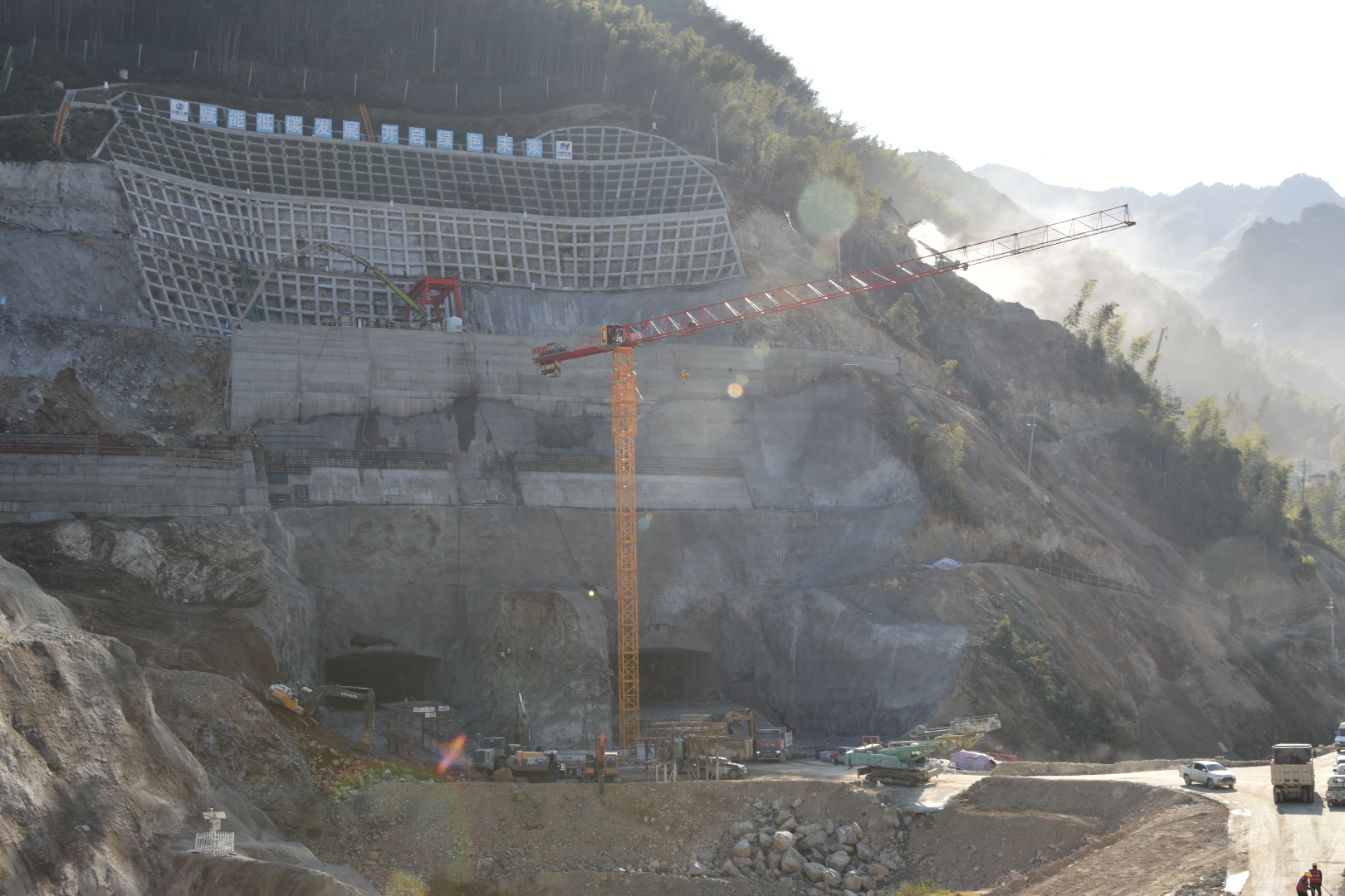 项目部始终秉持“履约为纲、质量为本、安全为基、效益为要”的十六字方针,树牢进度是最大的效益理念,狠抓资源配置、施工组织,全力确保各节点目标实现,围绕主副厂房、主变洞、尾闸洞“三大核心洞室”,下水库大坝、溢洪洞、尾水隧洞“三大关键枢纽”,以及辅助施工支洞、业主前方营地“两大配套工程”,以高标准施工效率解决冬季施工难题,推动项目建设高效推进。