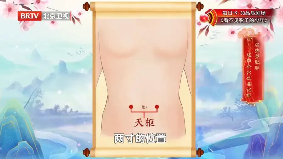 ②天枢穴:胃经的募穴,位于脐周旁开两寸(三指宽)的位置,也可以用同样的手法操作。