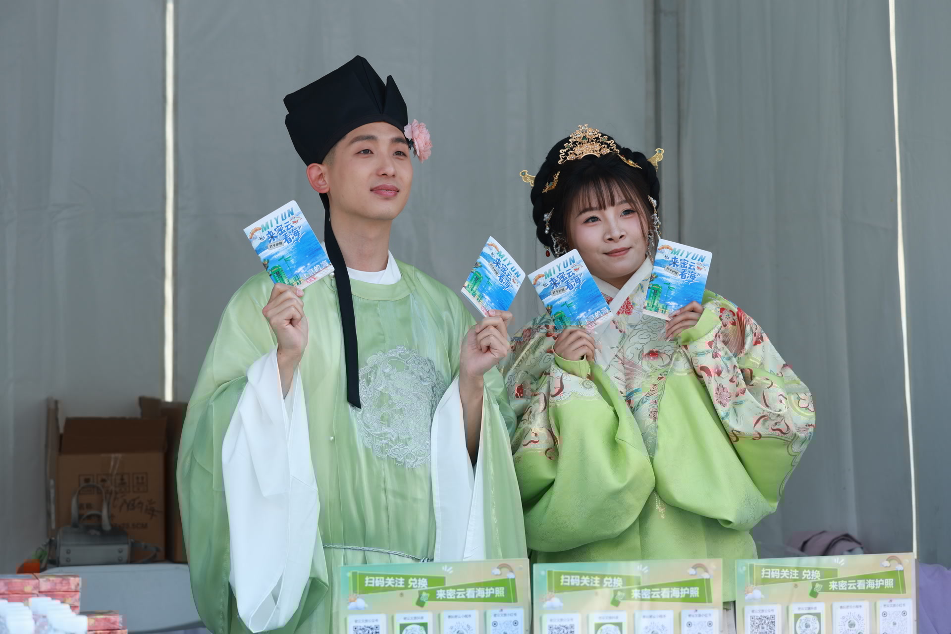 “看海”主题展演舞台上,密云非遗舞蹈霸王鞭《暖阳遇新芽》、原创说唱《来密云看海》、花神走秀等精彩节目轮番上演,呈现密云水库的湖光山色、春日繁花的烂漫景致。紧邻舞台的文旅市集,玲珑枕、蜂蜜杂粮等特色资源集中亮相,同样人气满满。