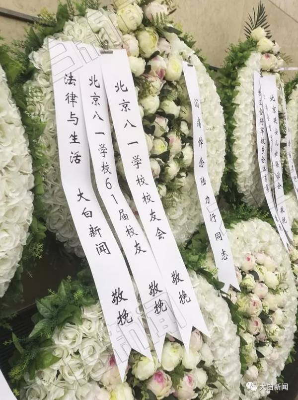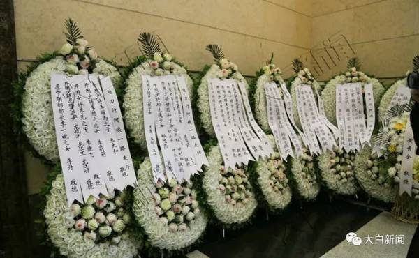 大白新闻从现场看到,中央军事委员会委员马晓天夫妇、空军司令员丁来杭、空军政委于忠福,农业部党组成员、农业部人事劳动司司长毕美家,农业部、中央纪委驻农业部纪检组、农业部离退休干部局等单位和个人都送来花圈和挽联表示哀悼。