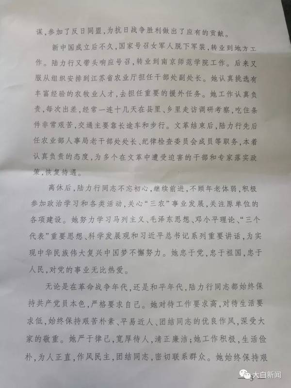 11月14日,大白新闻曾独家报道了《开国中将余立金夫人、红军老战士陆力行辞世,享年102岁》的消息:陆力行同志因病于2017年11月14日7时12分在北京逝世,享年102岁。今日,大白新闻也向陆力行老人送来了挽联,以表达对陆力行老人离世的哀悼。
