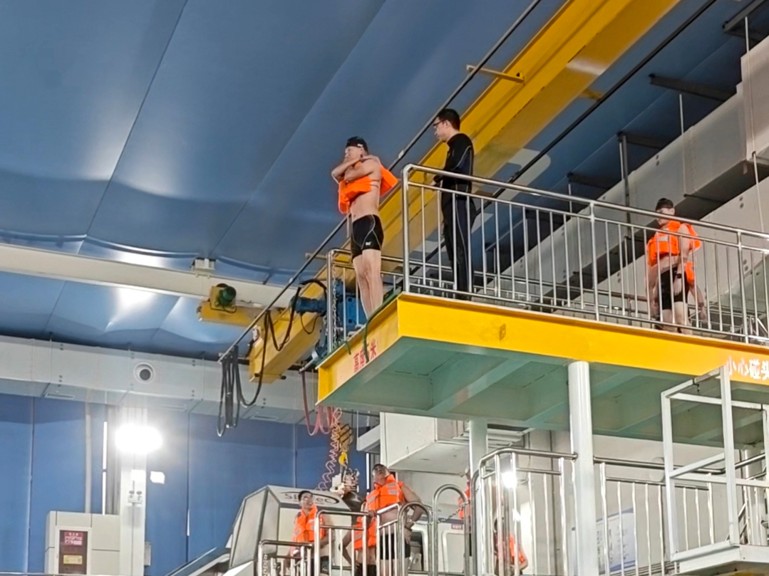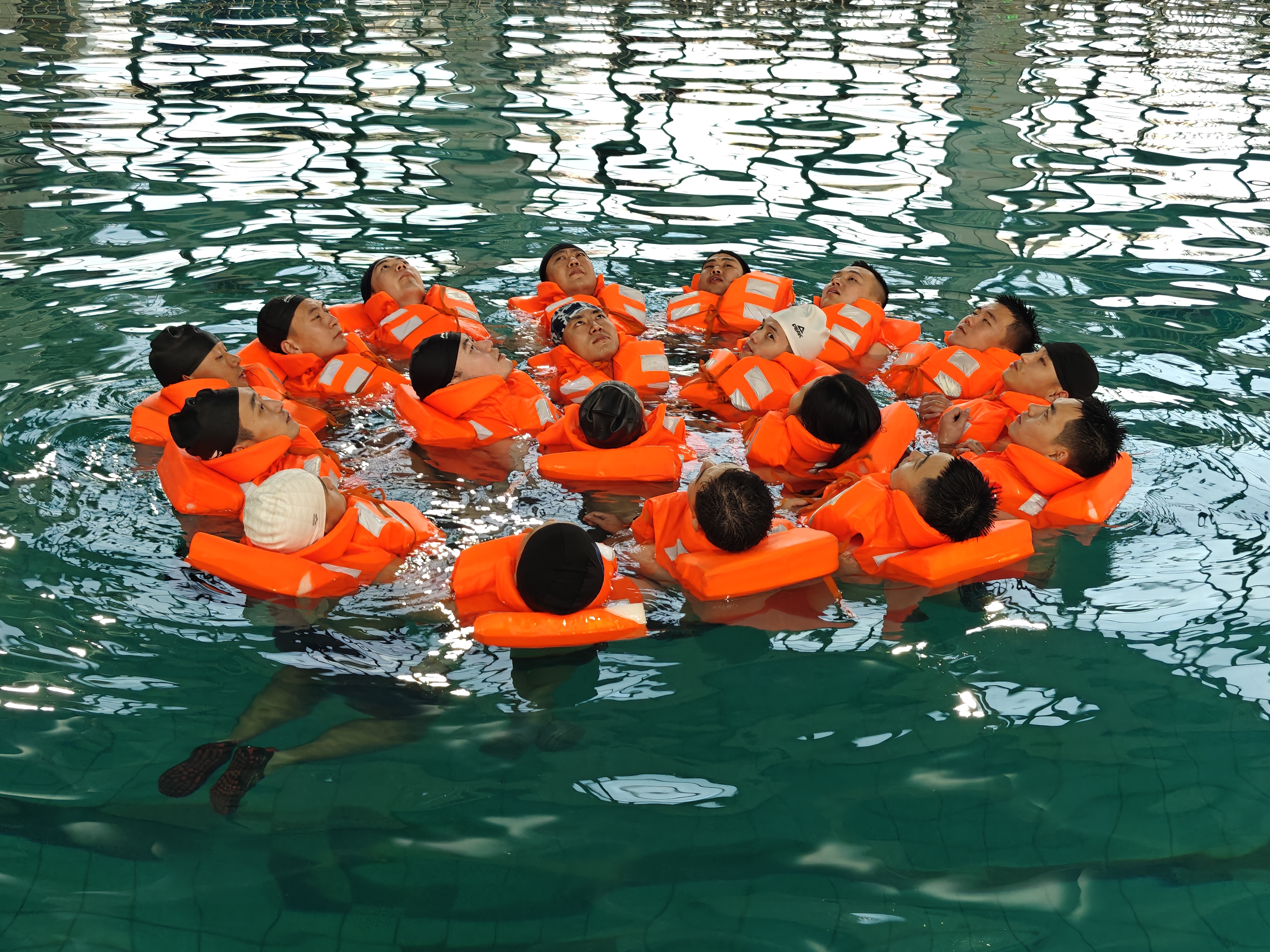 课堂上,教员重点围绕海上救生、消防、直升机水下逃生等内容进行理论讲解。实操一线,教员采取区分小组、手把手、点对点指导。“1、2、3...”,心肺复苏训练中,执法员们双膝跪地,规范地按压模拟人胸部实施抢救。直升机水下逃生训练区,执法员们按照理论讲解要领,快速选择直升机出口逃生,顺利通过考核。通过培训进一步提升了执法人员登检海上石油设施的应急防护意识,最大程度降低海洋环境执法过程中安全事故的发生。