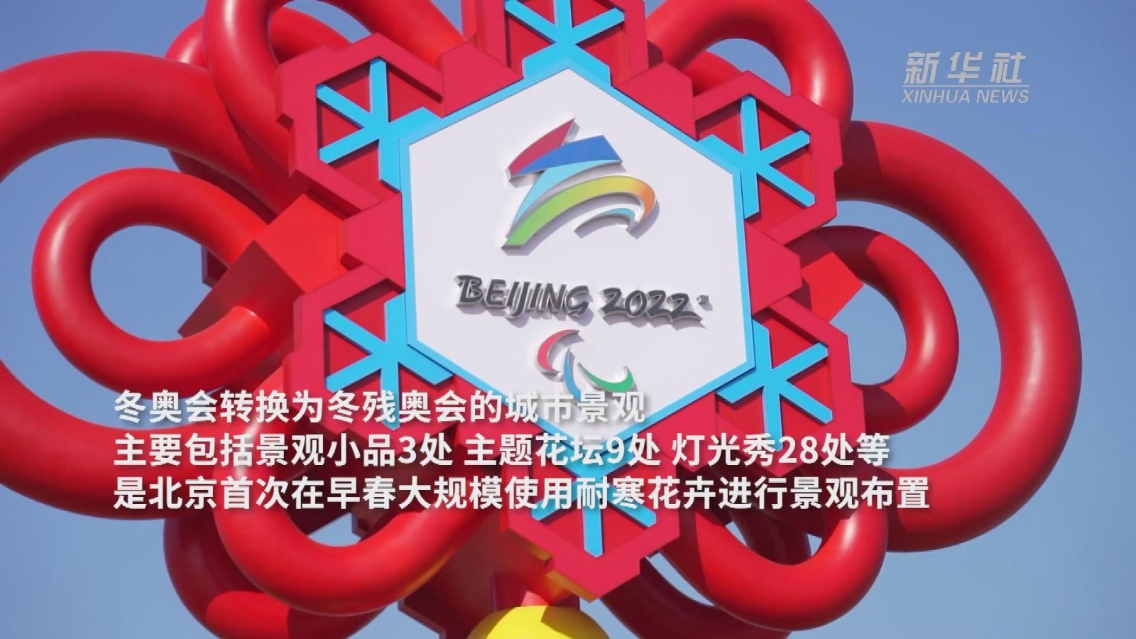 冬奥会会徽、吉祥物转换为冬残奥会会徽、吉祥物,主题花坛彩色有机覆盖物转换为早春耐寒花卉……北京由冬奥会向冬残奥会城市景观布置,预计2月28日将完成转换,确保“两个奥运,同样精彩”。这也是北京首次在早春大规模使用耐寒花卉进行园林特色花卉景观布置。