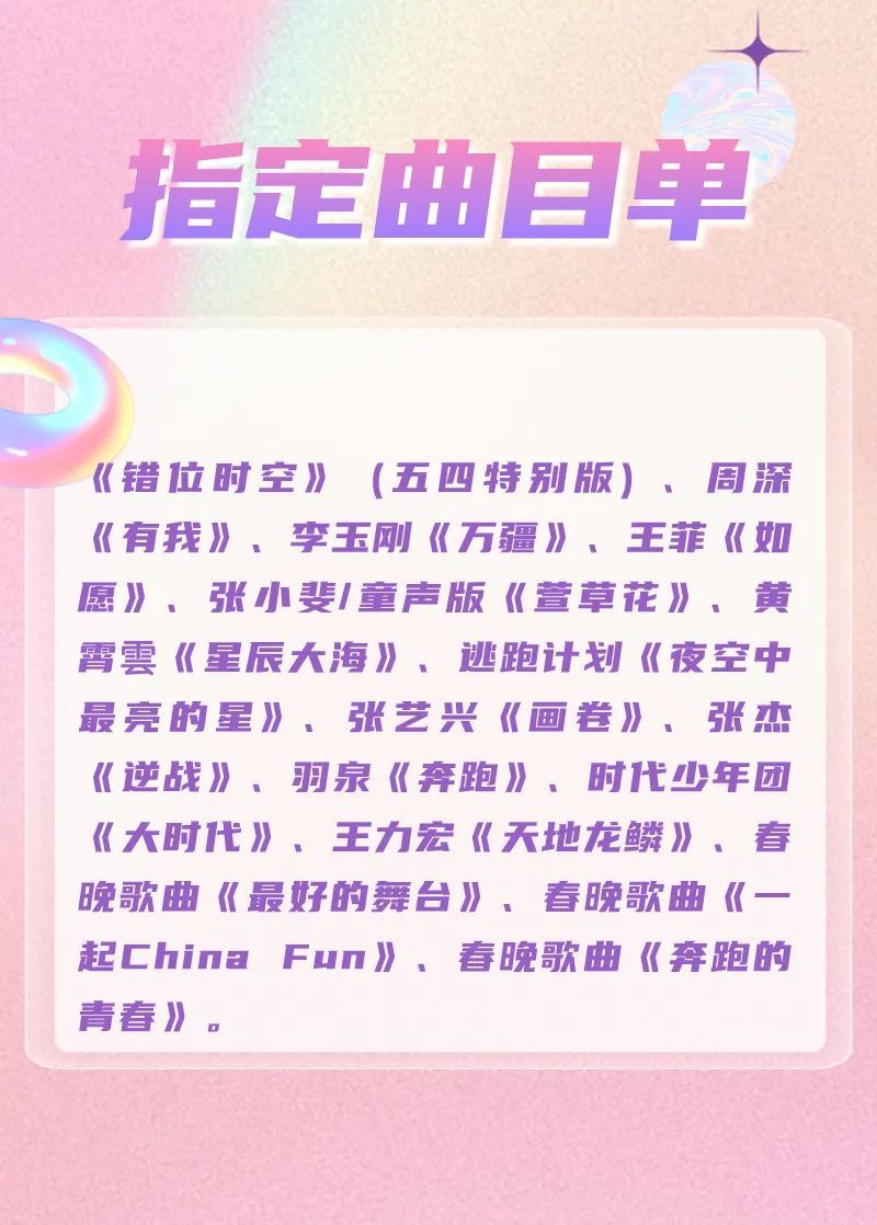 参赛人员需从大赛组委会推荐的曲目中选择音乐进行编创,可选择多首推荐曲目进行混编。
