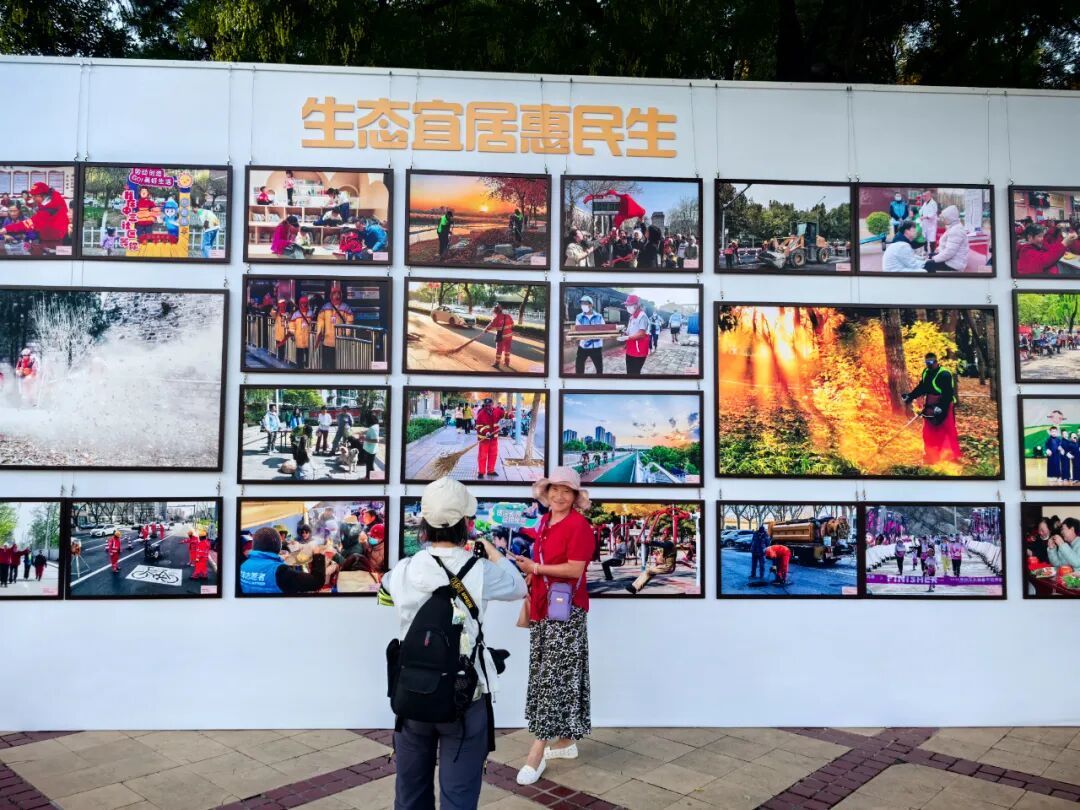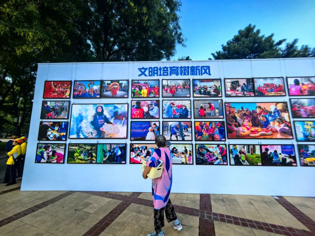 广场周边的“文明拍客拍文明”摄影展,同样吸引了大批市民驻足。120余幅照片里,有志愿者帮老人理发的场景,有曾经杂乱的小巷变成“花园路”的对比,还有书店里市民有序看书的场景……