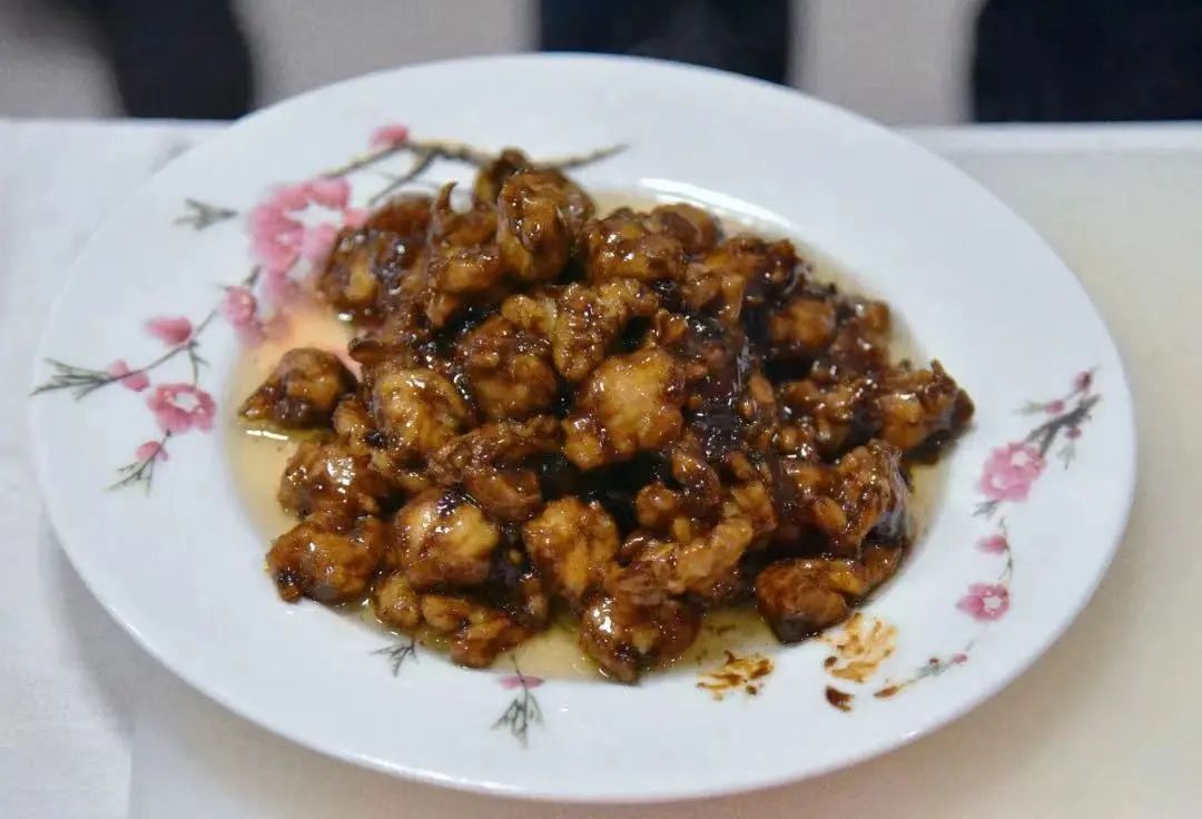 用特制的酱料裹着嫩滑的鸡块,口感鲜嫩、酱香醇厚,酒桌上必备的美食非他莫属。