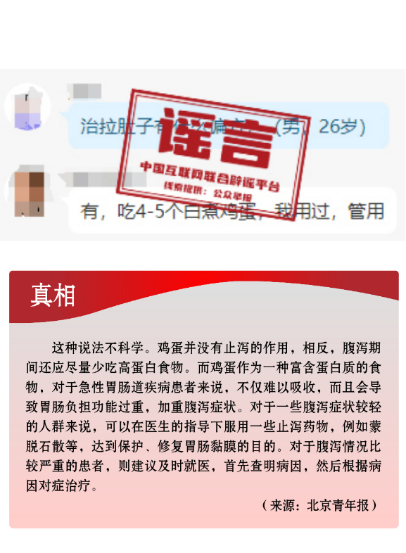 辟谣丨吃鸡蛋能止泻?_北京时间