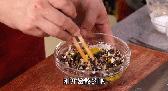 制馅:馅儿中加入切碎的葱姜、3~4g盐、2~3g胡椒粉、3~4g鸡精、先拌匀调料,再把鸡黄搅在一起,瞬间抱成团。