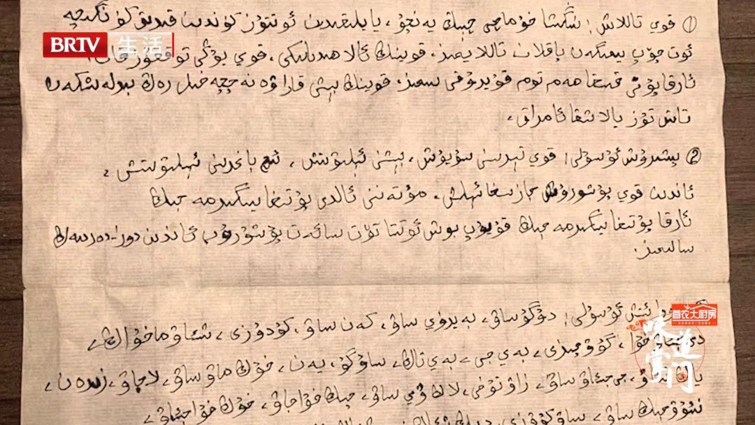 李林育毕业于北京外国语大学,大二的时候就已经过了英语专八,他学的是同声传译,做过好多大型会场的翻译。但就是这样一位北外毕业的高材生,却被一张突然出现的纸给打乱了。这张写满回文的纸是李林育从爷爷家的柜子里翻出来的,上面写的都是烤全羊的秘方,从选羊的方法到四十多种调料的配比,面面俱到。