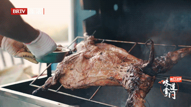 生烤近3个小时后,再把调整的香料研磨成粉,均匀涂在烤羊上,配上料酒和菜籽油提香,香喷喷的烤全羊就可以上桌了。