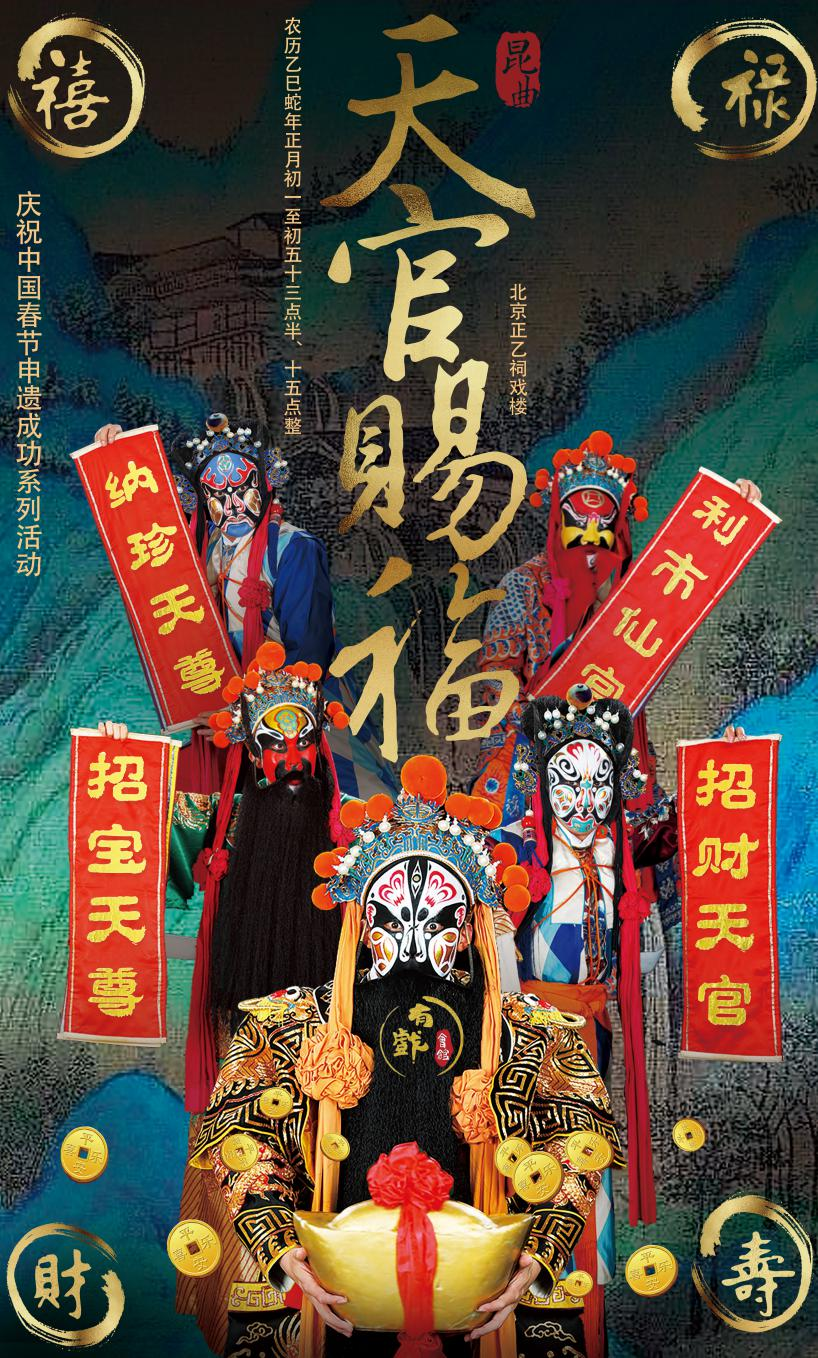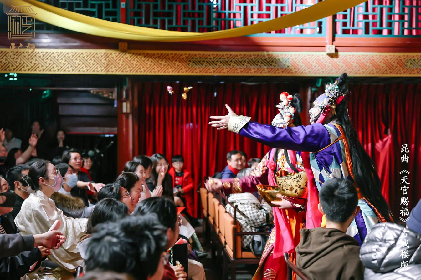 此次《天官赐福》的演出活动和以往不同,正乙祠戏楼开启了惠民半价票模式,让更多热爱传统文化的人走进正乙祠。乙巳年正月初一至初五每日两场(十三点半、十五点整),每场演出时长30分钟,