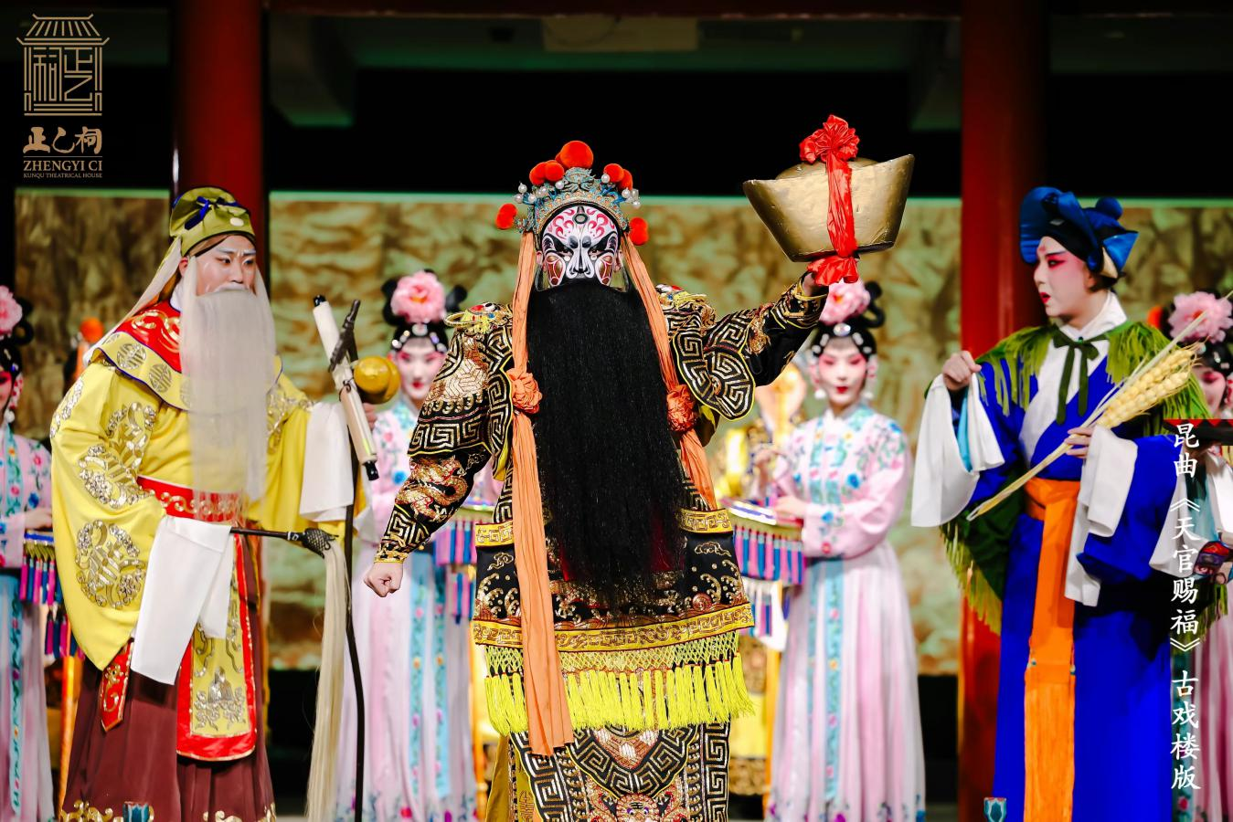 昆曲《天官赐福》,是一出吉祥戏,全剧曲词无不吉祥如意。旧时无论宫廷节令承应,还是民间喜庆堂会,都经常上演。