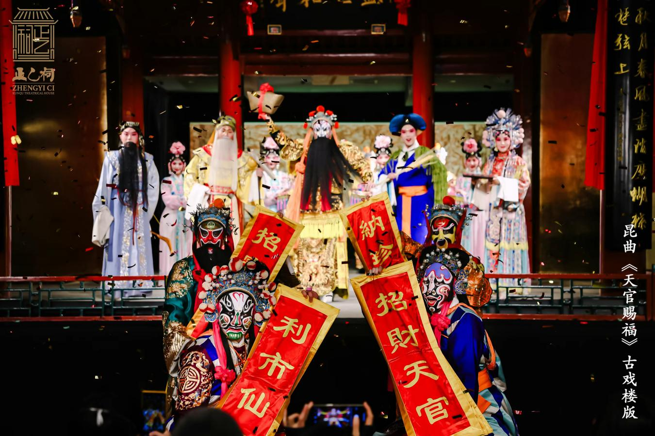 在这个春节,正乙祠邀您:喜游戏楼,共庆新春!现场更有财神赐“财”“福”的互动,观众可以自己书写“财”、“福”等字,让“财神赵公明”盖章并合影留念,用最古老的方式为您献上祝福。